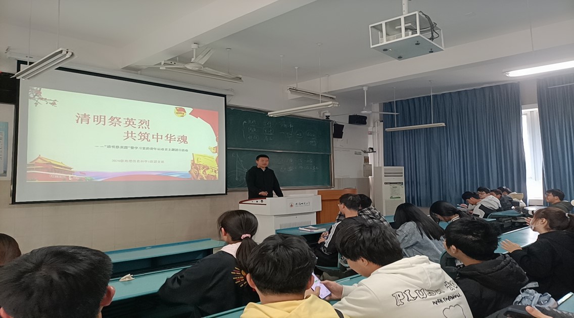 程灵箫 汪子韩 彭媛媛)清风抚松柏,清明祭忠魂。为缅怀革命先烈,传承红色基因,2020级地理信息科学1班团支部于4月3日清明节来临之际开展“清明祭英烈暨学习党的青年运动史”主题团日活动。