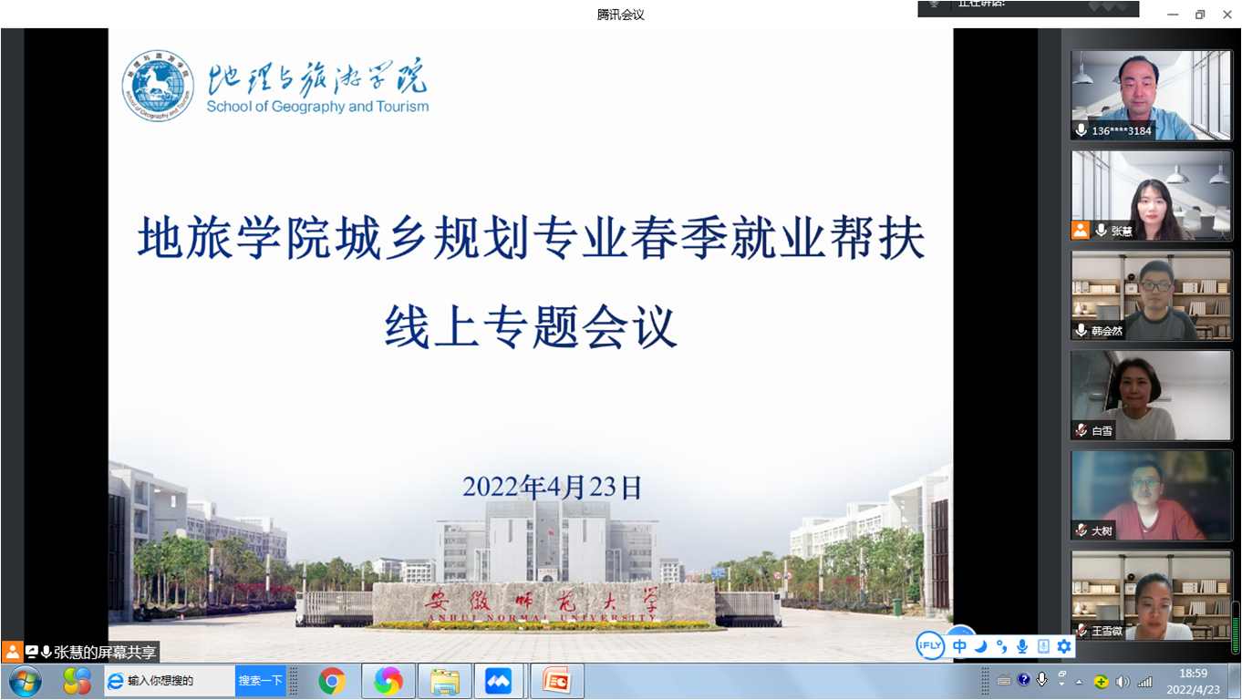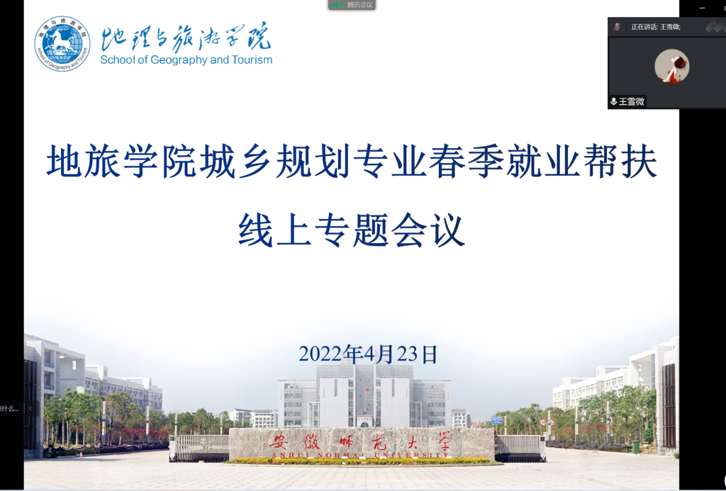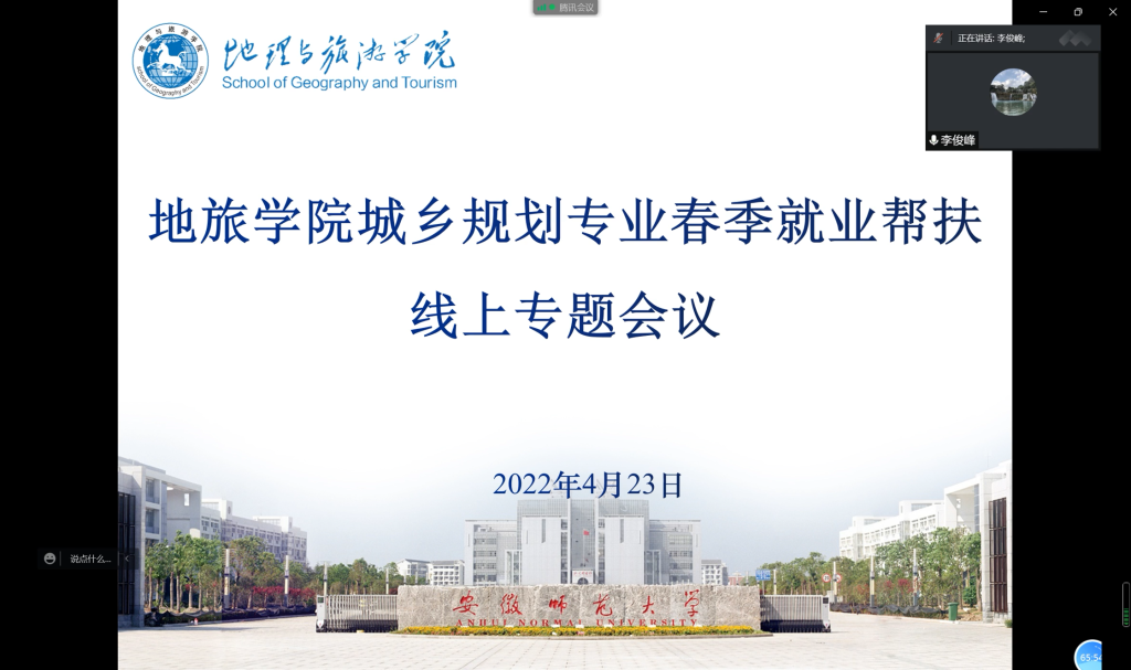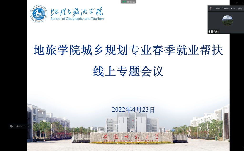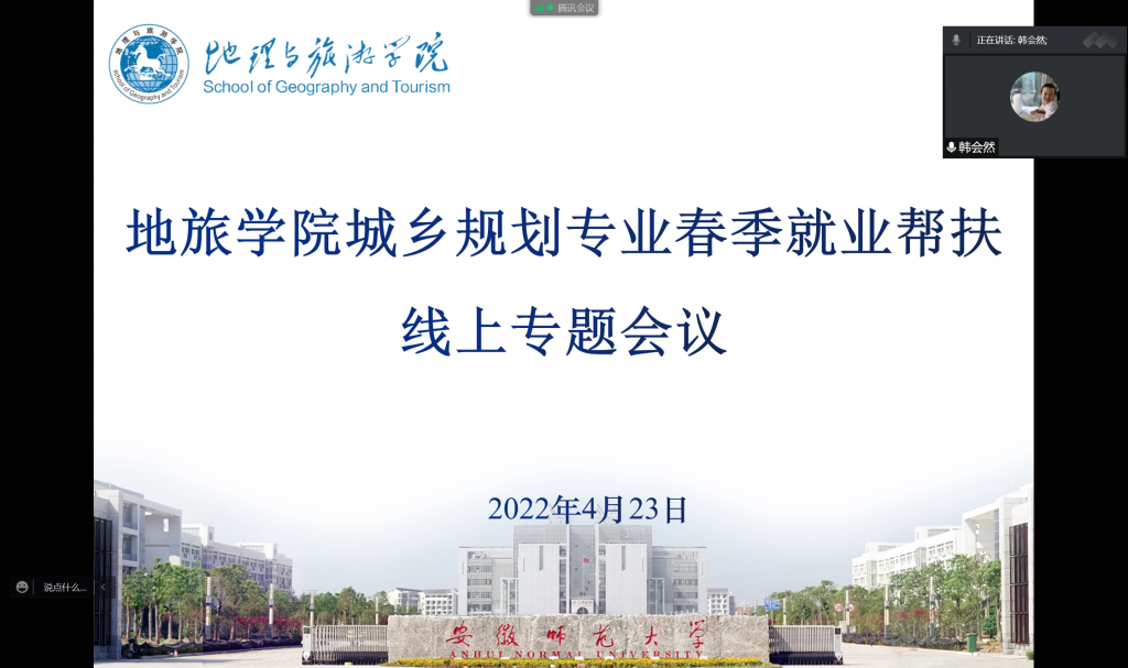 召开城乡规划专业春季就业帮扶线上专题会议,学院党委书记贾冠忠、党委副书记乔静、副院长杨兴柱、城乡规划专业负责人韩会然、专业全体教师及辅导员张慧参加了此次会议。会议由韩会然主持。