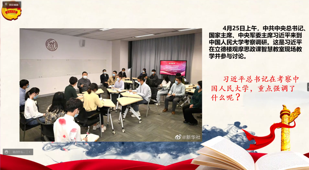 中国人民大学是我们党创办的第一所新型正规大学,历史悠久,具有光荣的革命传统和鲜明的红色基因。2014年5月4日,总书记在北京大学考察时强调“我们要认真吸收世界上先进的办学治学经验,更要遵循教育规律,扎根中国大地办大学。”此次考察的中国人民大学,正是“扎根中国大地办大学”的生动写照。2022年4月25日,习近平总书记专门参观了中国人民大学校史展。他强调,一定要把这一光荣传统和红色基因传承好,守好党的这块重要阵地。