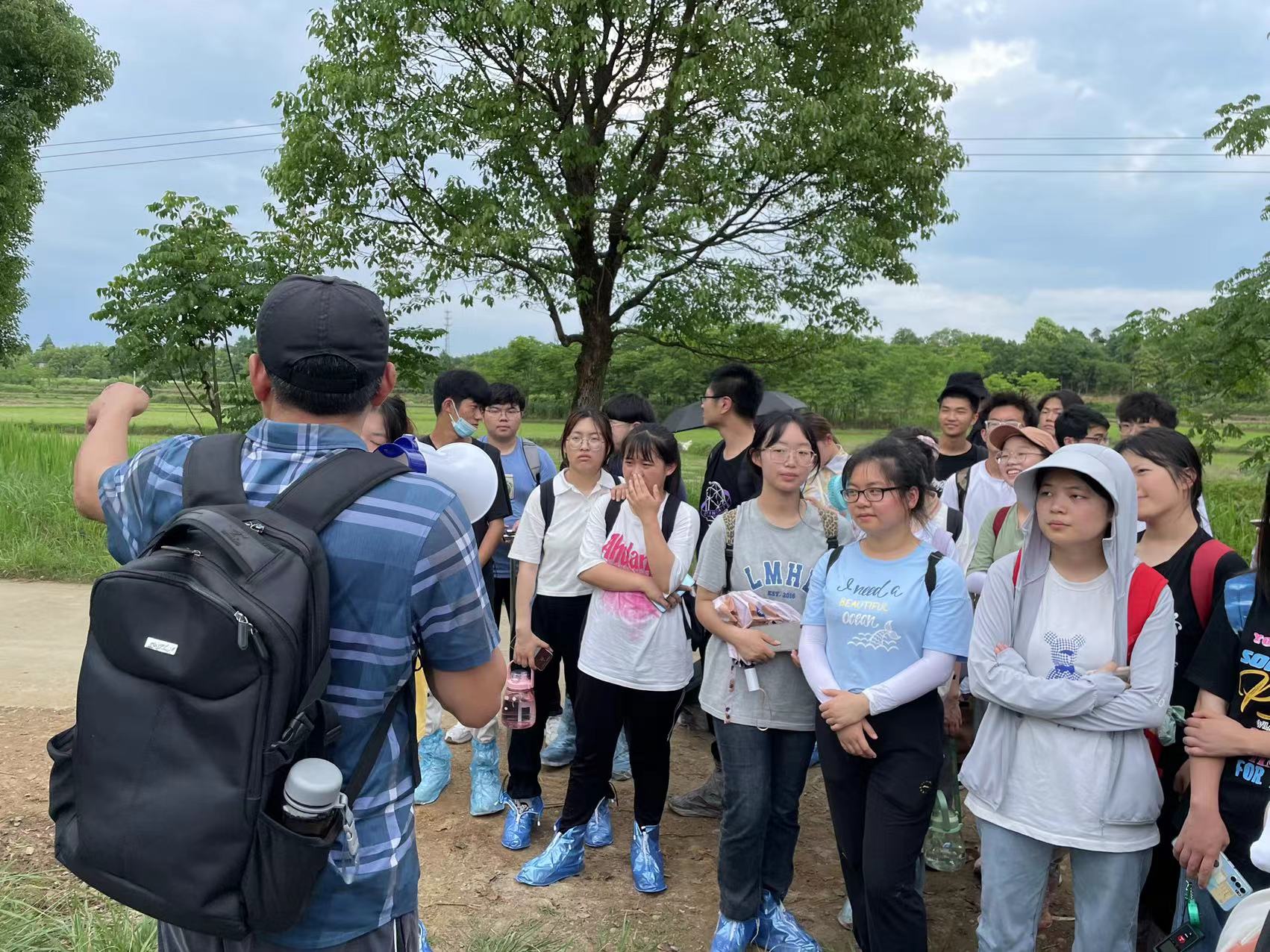 6月4日下午,同学们整装待发,乘坐大巴车一同前往三里镇官田冲进行具体实践学习。余健老师向同学们详细讲解进行土壤采样及分析方法,朱永恒老师从土地潜力角度介绍评价依据,同学们认真学习,积极互动,结合所学,踊跃发言。