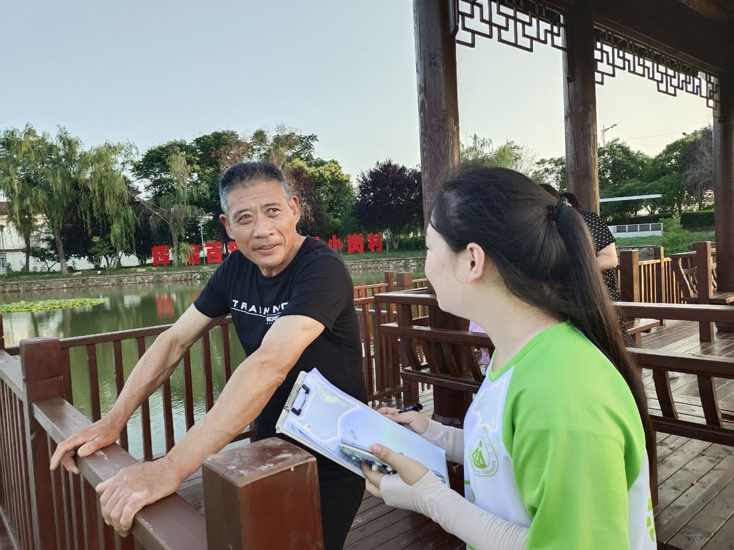 经过一天的走访和调研,队员们对小岗村有了初步的印象,在这个充满了农业发展气息的地方,伴着田间的阵阵青草香,队员们积极融入当地的村民们,与他们进行友好的交谈,争取获得相关信息。在灼灼烈日下,皮肤是炽热的,队员们的热情也伴随着在小岗村的每一秒渐渐升温,一切都充满了希望与力量。