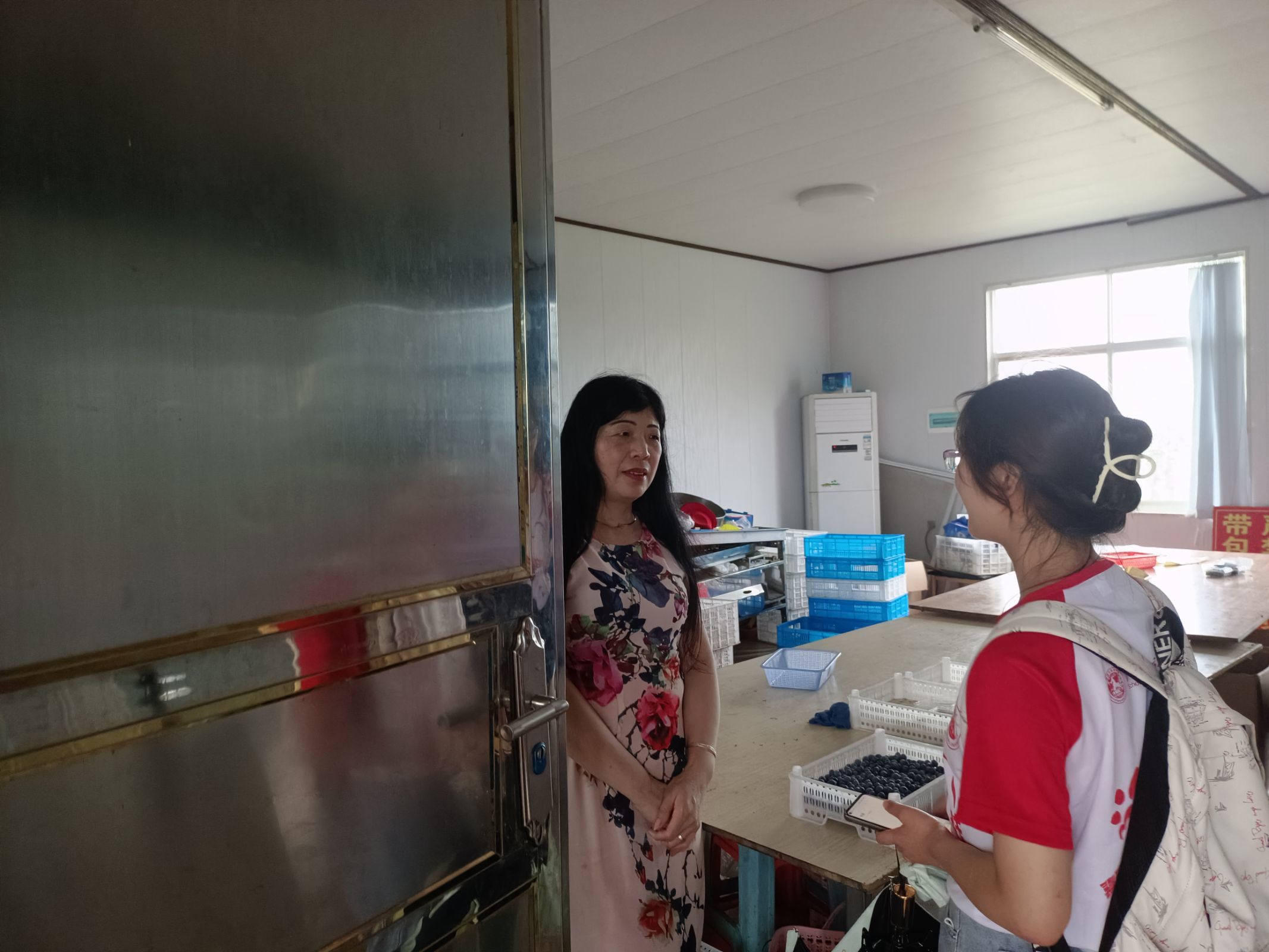 “采摘园于2002年建成,蓝莓结果期五月中旬到八月份,品种多样,不同品种成熟时间有差别,怀宁这边有一百多家蓝莓基地,五月中旬成熟的蓝莓最好吃,皮薄籽少。”负责人向同学们介绍道。