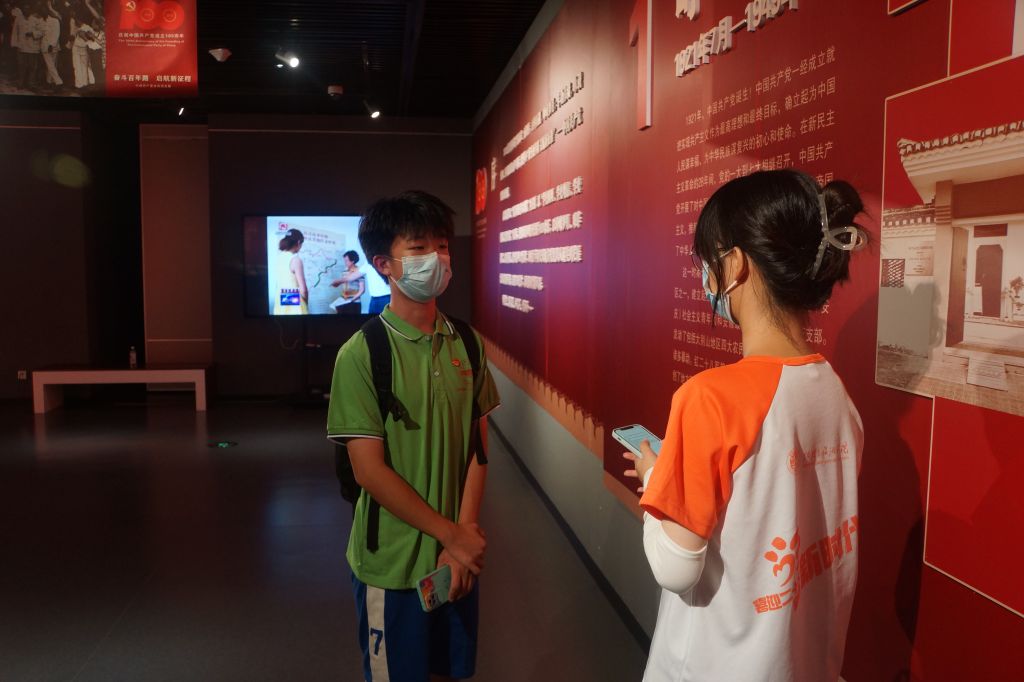 在开放社教部副主任陈恒的带领下,团队首先参观了中国共产党安庆历史展。此次展览以“光辉历程,伟大成就”为主题,以“学史明理、学史增信、学史崇德、学史力行”为目标,精选展出珍贵历史图片620余张。展览分为峥嵘岁月、艰辛探索、改革新篇、奋力圆梦四个篇章,实践团队走进党史纪念展,回顾百年间安庆地方党组织从诞生到发展壮大的光辉历程,重温中国共产党艰苦奋斗的红色记忆。陈主任向我们讲述了中国共产党的主要创始人之一陈独秀先生的生平,并介绍了陈乔年、陈延年的英烈事迹,从革命英雄事迹中感悟党百年奋斗的光辉历程,培养青年一代的使命担当。