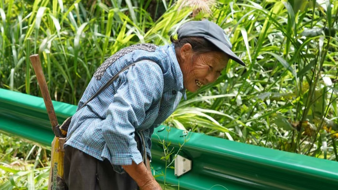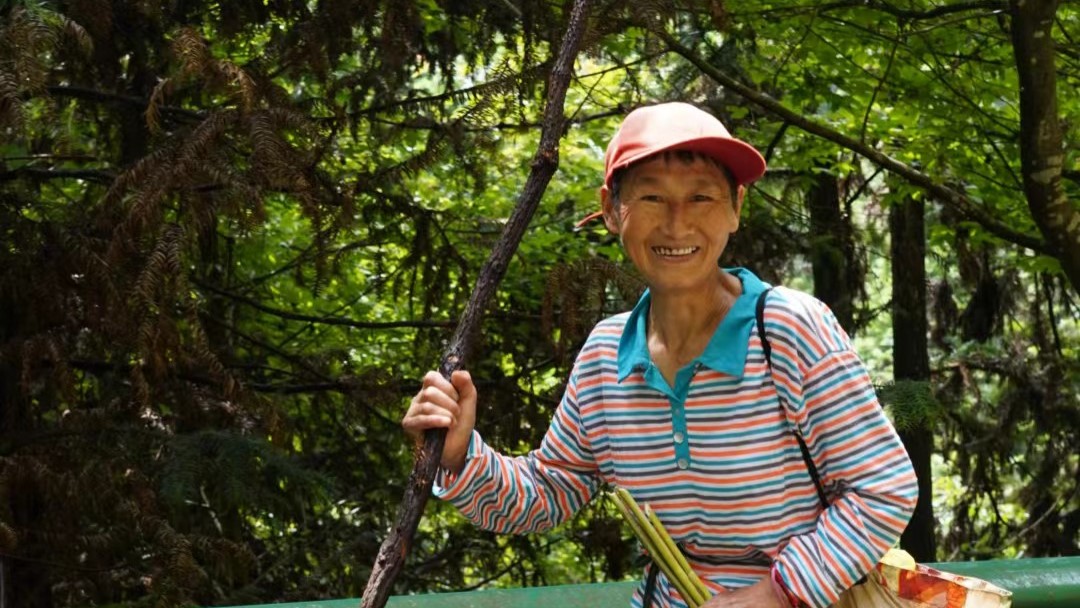 调研团队一路沿着青石板路上山,沿路遇到很多背着竹筐、手拿镰刀砍伐竹子的村民,在山路岔口还有一些村民贩卖晒干的农产品。村民淳朴热情,为调研团队带路,并表示了对实践团队的调研表示热烈欢迎。