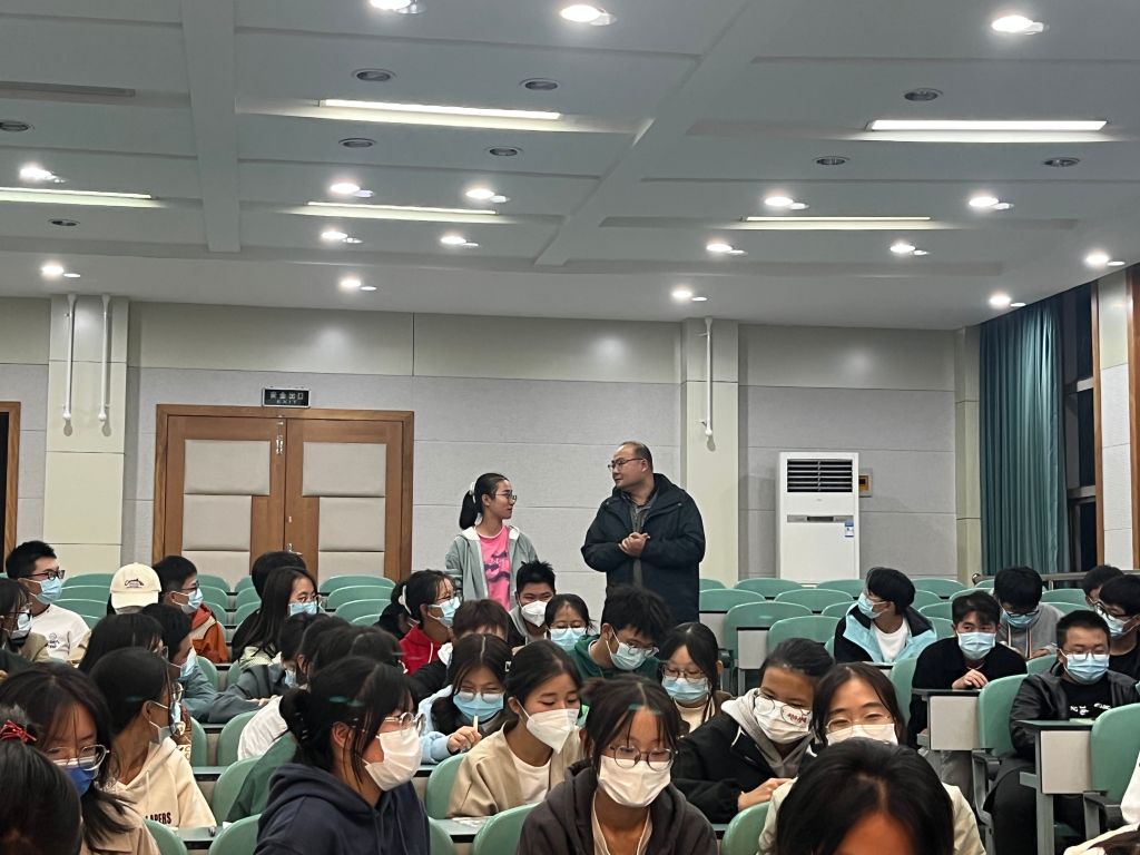 在见面会的最后,同学们在认真聆听、积极思考后向专业教师们提出问题,尹寿兵、黄剑锋等教师与同学们进行了互动交流,解答了谢美晶、苏明远等同学关于本专业就业前景和学业规划方面的问题。尹寿兵教授鼓励旅游管理专业全体新生求实求新,追求卓越,争做新时代先锋青年,引起全体新生的热烈回应。