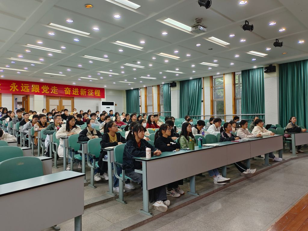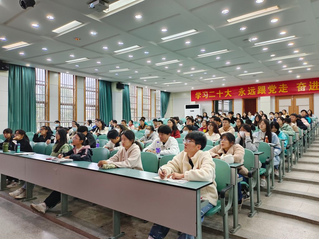 院长方凤满,辅导员陈祥云,2022级地理信息科学专业一班全体同学出席报告会。