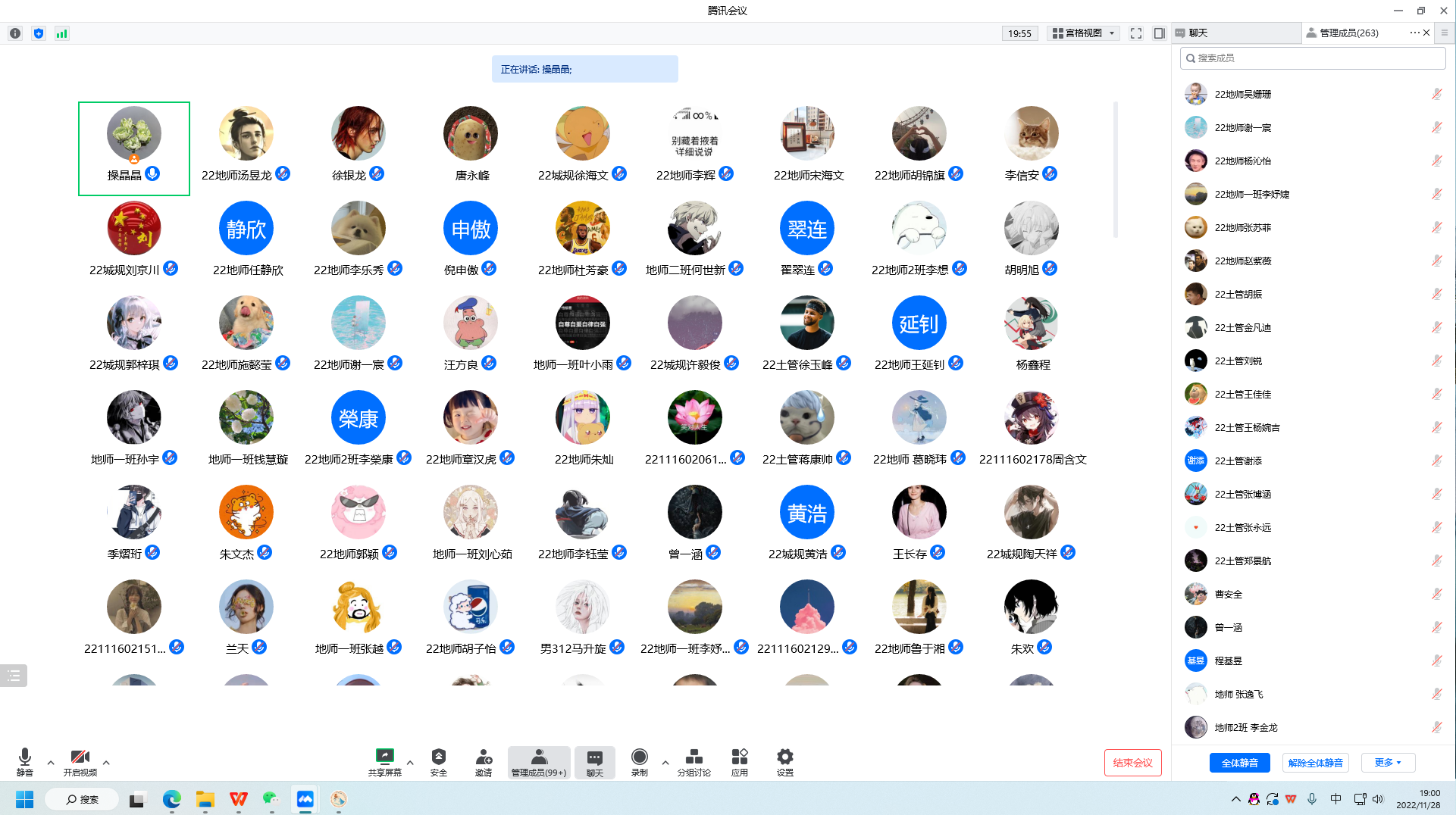为提高学生文明意识及思想道德修养,加强大学生文明修身教育,2022年11月28日晚,2022级地理科学(师范)专业、土地资源管理专业、城乡规划专业开展“文明修身树新风”线上主题班会,全体学生参会,班会由辅导员操晶晶主持。
