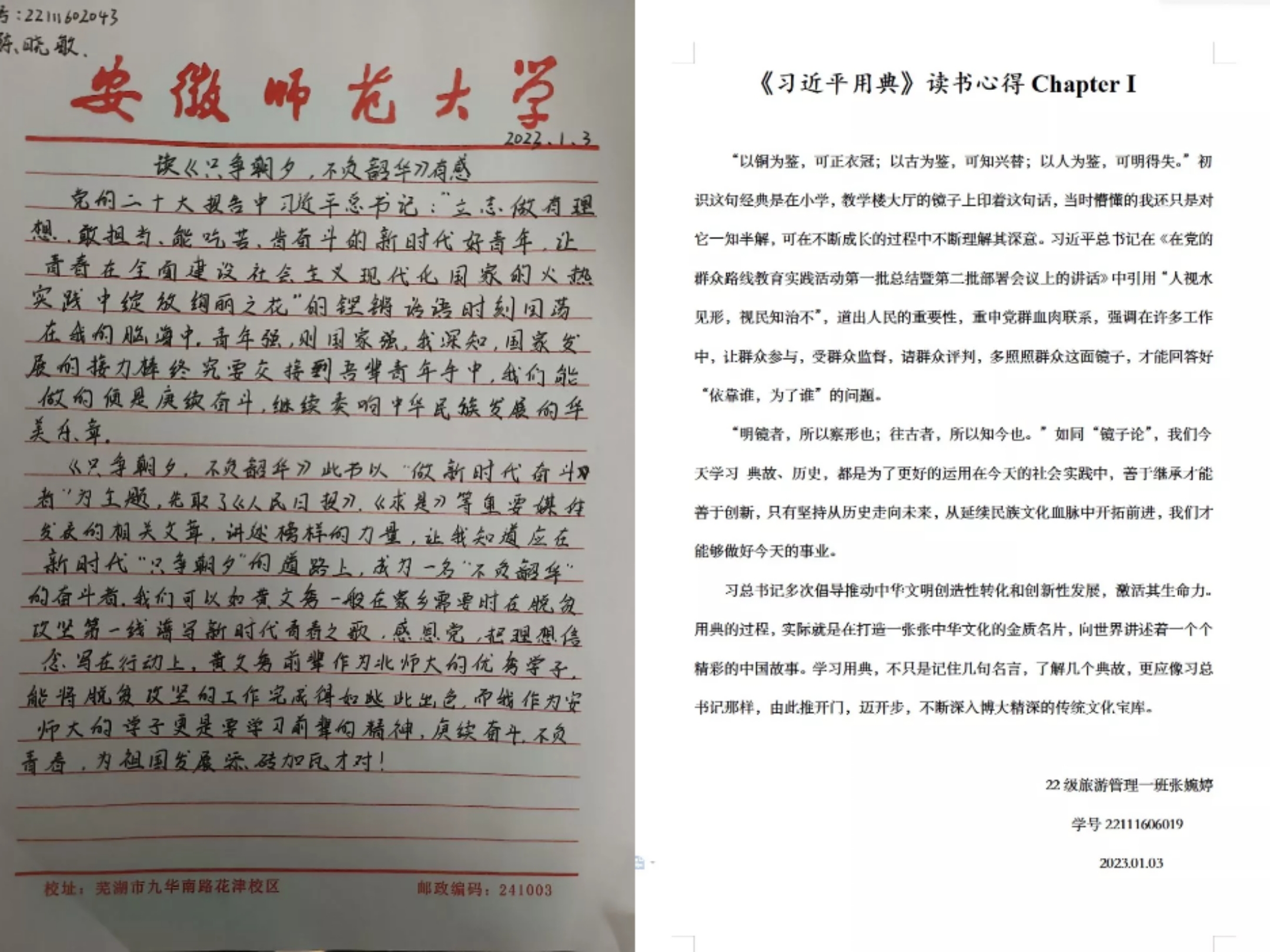 品味经典书籍,感悟青年使命。地旅学子积极阅读党的二十大报告(全文)、《习近平的七年知青岁月》《习近平与大学生朋友们》《我心向党》《梁家河》《习近平用典》《平易近人》《苦难辉煌》等相关书目,并认真撰写阅读心得与读书笔记,在经典学习中不断学习伟人精神,增强自身爱国情怀和使命担当。学院共计901人参与青春共读并撰写心得笔记。
