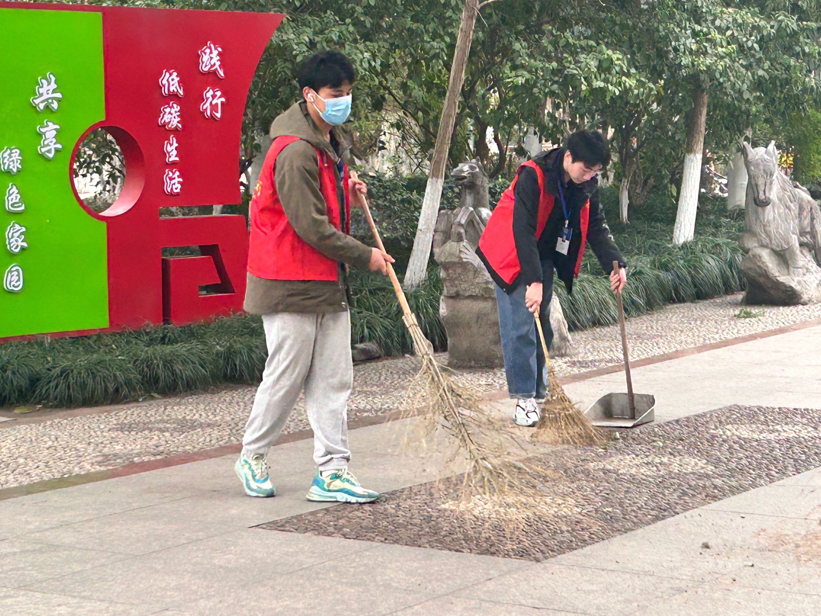 志愿者们共分为四组,各组负责人带领组员分头开展活动。志愿者们主要工作是将路边的垃圾清理进垃圾桶内,各位志愿者干劲十足,发扬不怕脏不怕累的精神,捡起地上的烟头、塑料袋、瓶子等垃圾,并对垃圾进行分类投放,忙碌辛勤的他们构成了一道亮丽的风景线。当看到老爷爷在清扫落叶时也积极上前帮忙,大大减轻了老爷爷的工作量,并对随地扔垃圾等不文明行为进行耐心劝导,宣传文明行为。