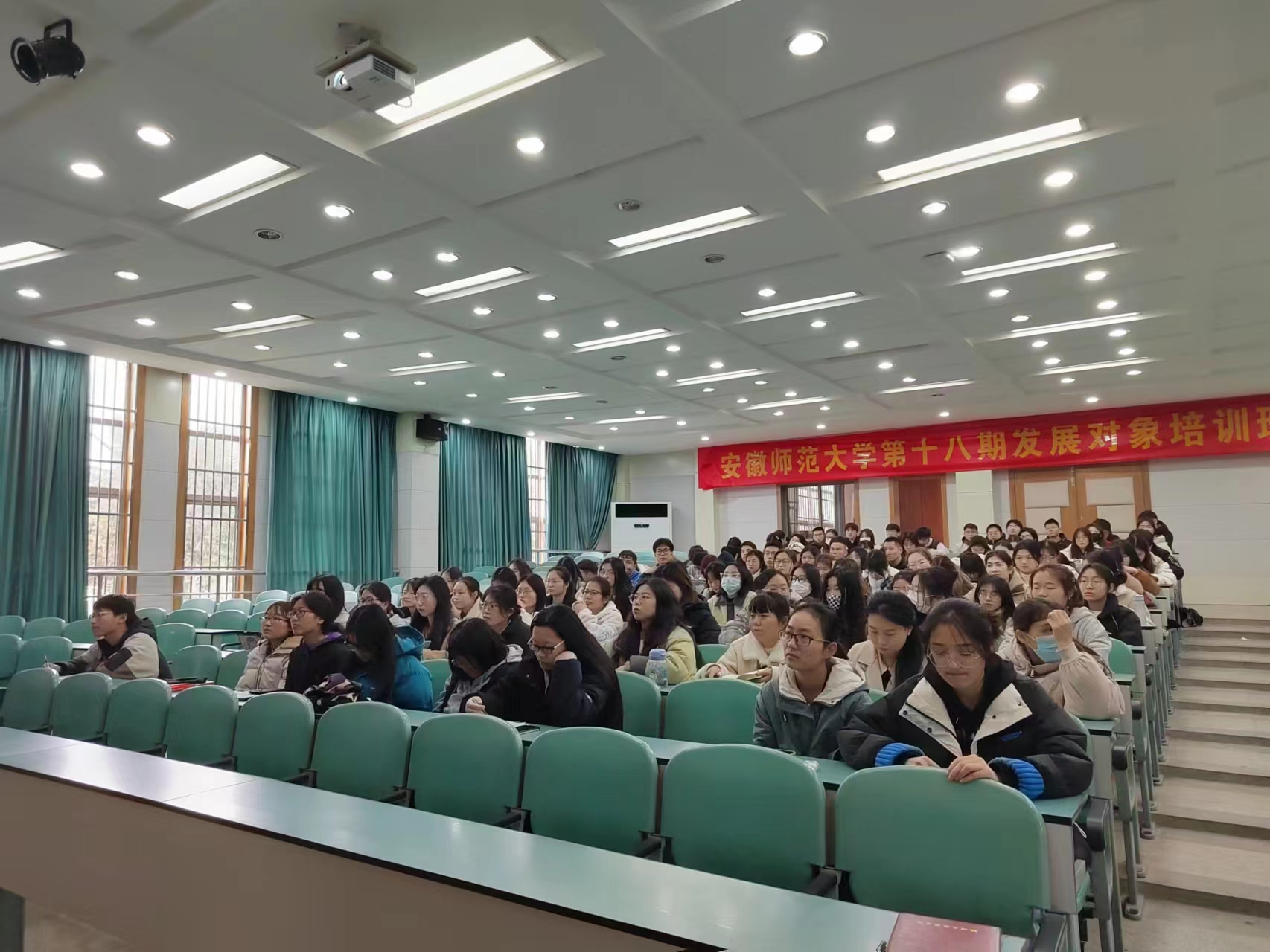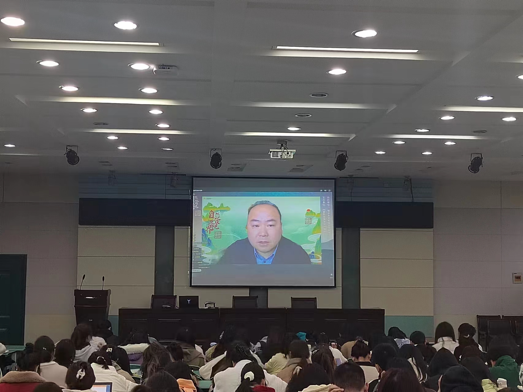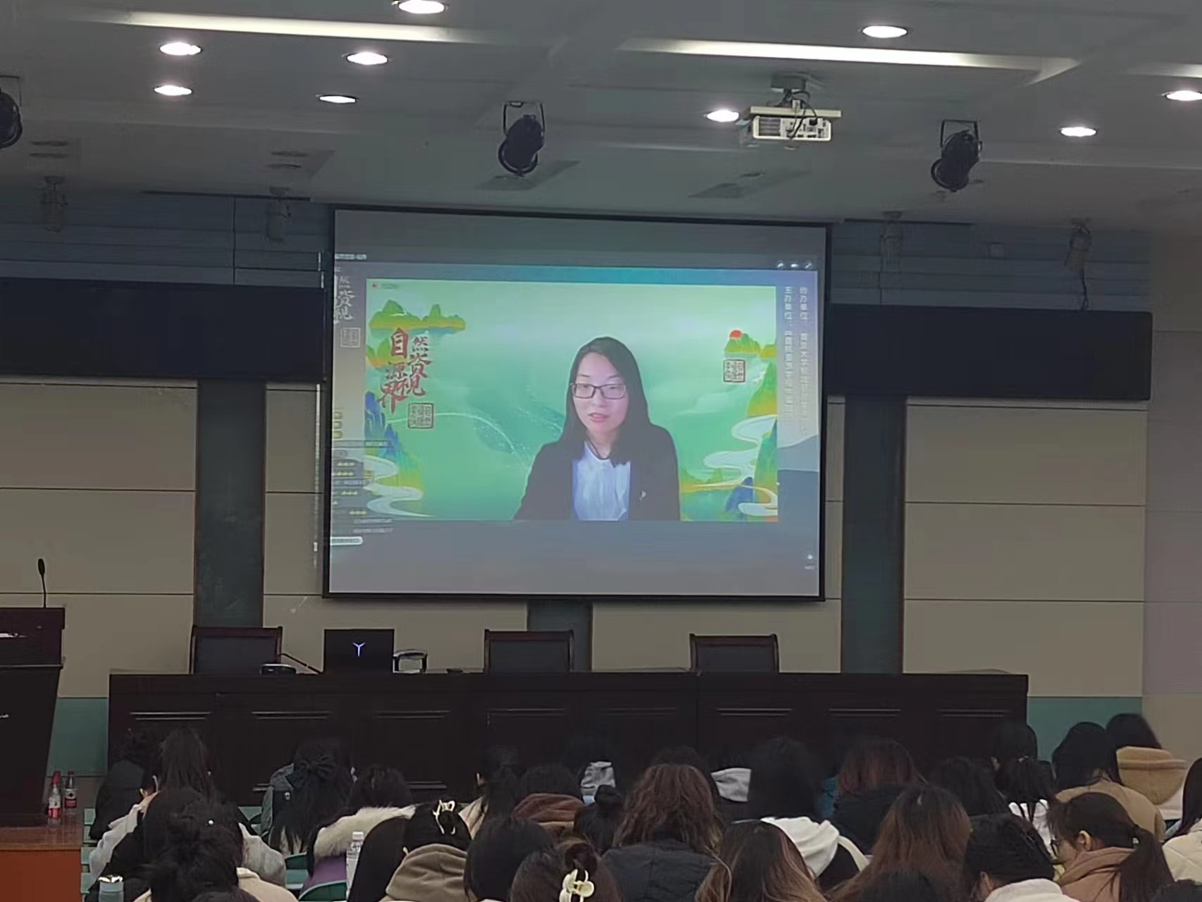实验楼101报告厅集中收看直播。