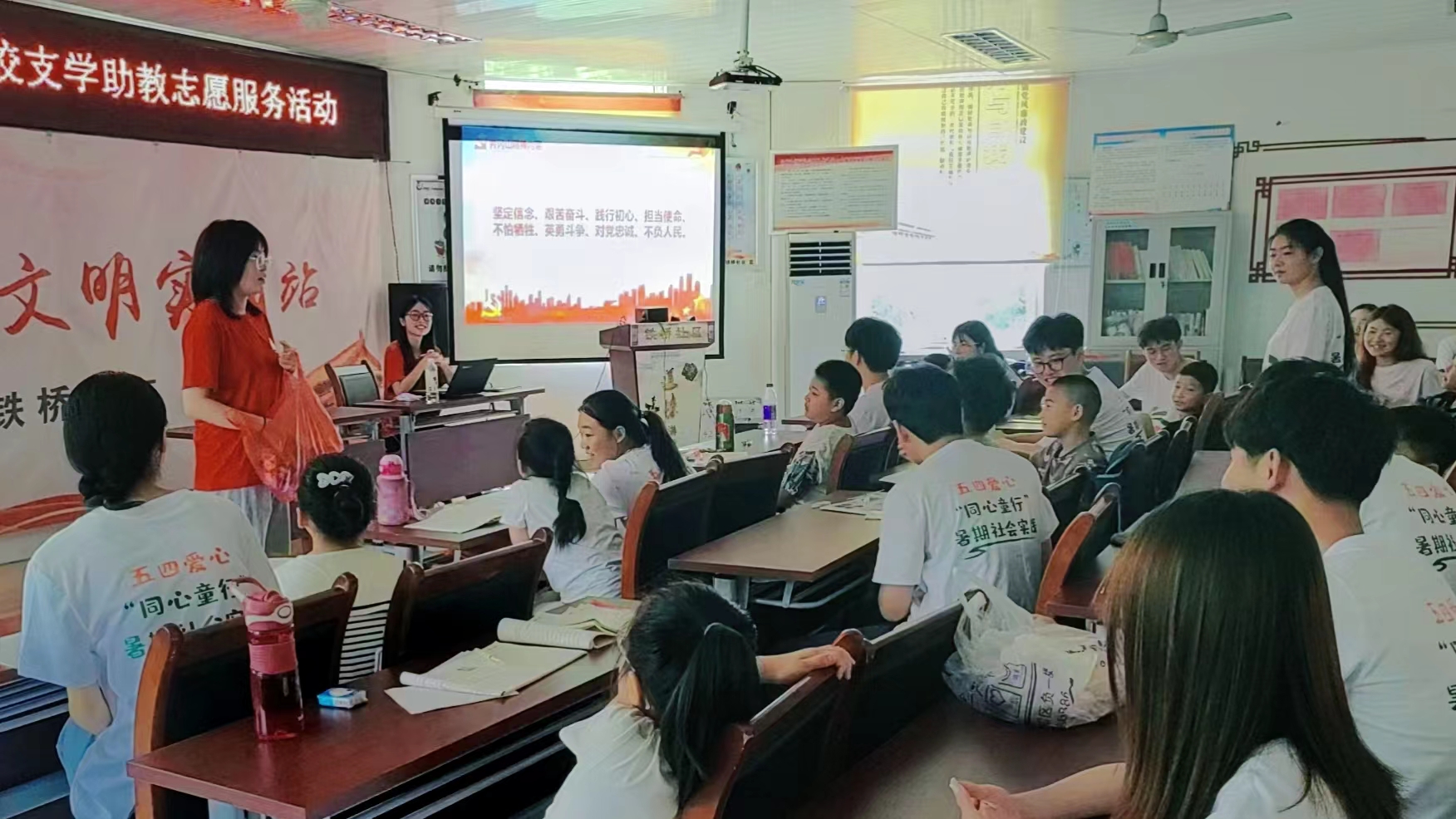赴江西井冈山“摇篮育初心,青春井冈行”实践团队来到芜湖市铁桥社区,对社区内小学生进行井冈山精神宣讲,重点讲述了建党起源和伟大建党精神,激发社区小学生的爱国热情和民族精神。