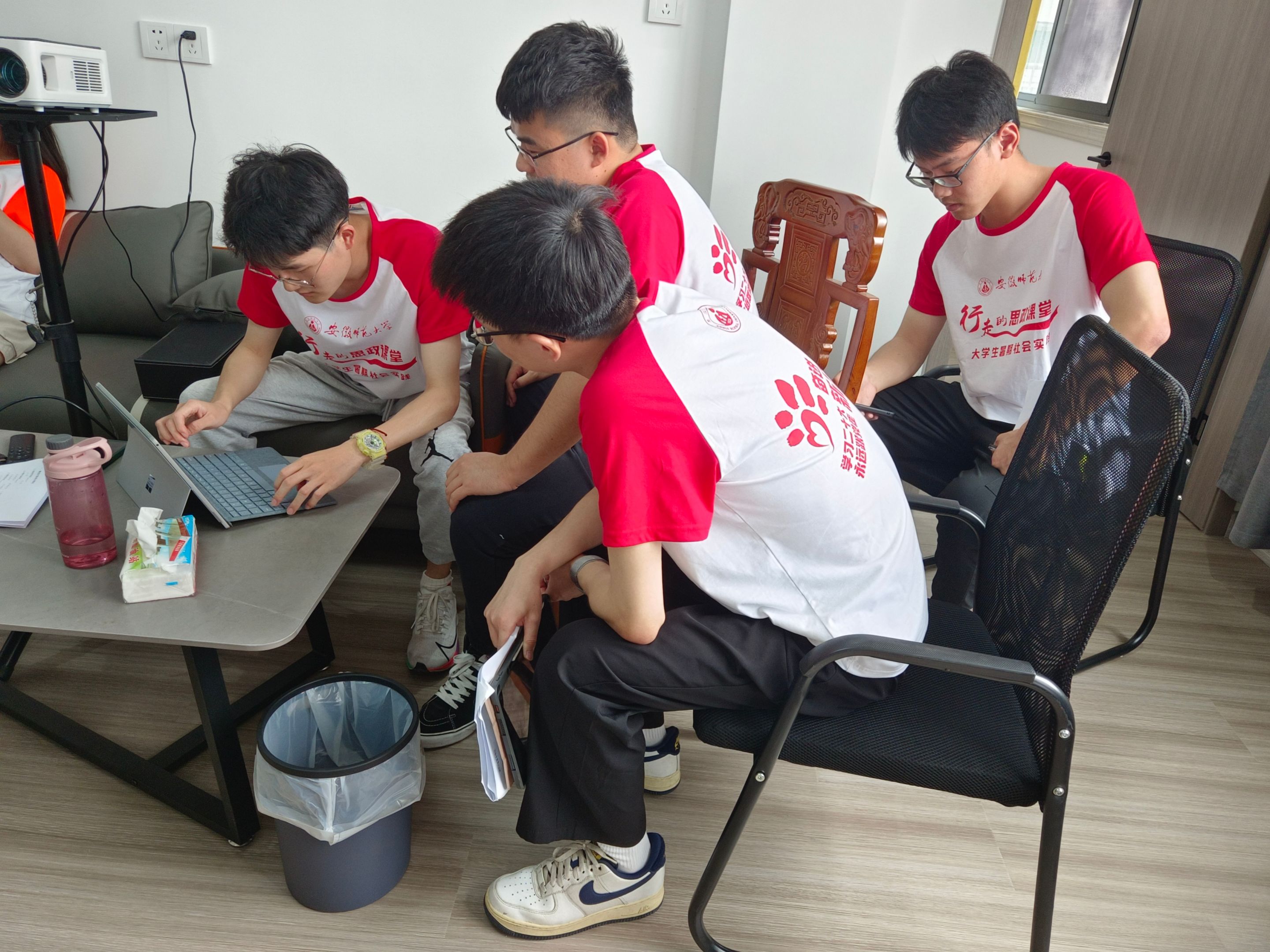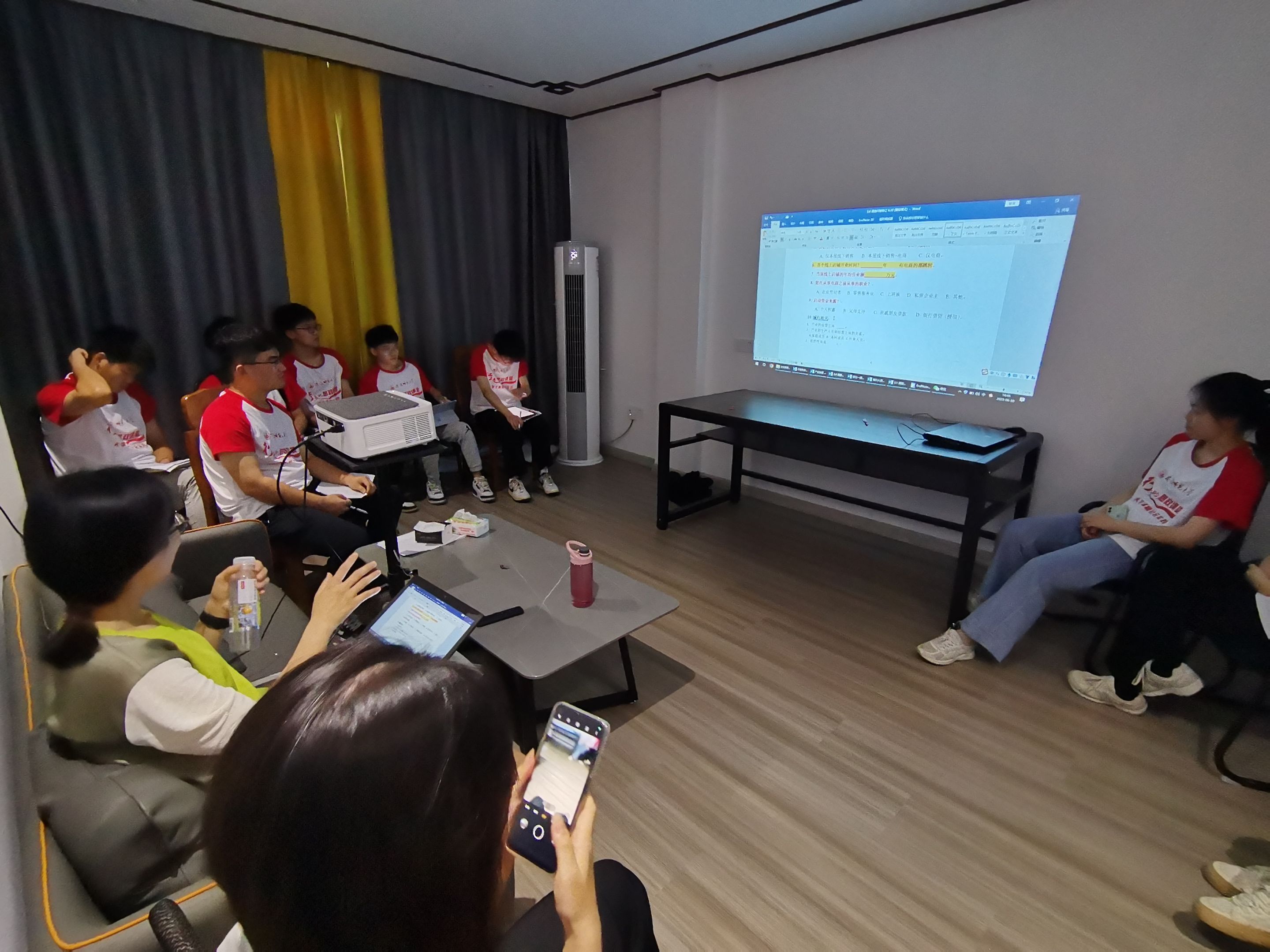 负责同一部分的同学汇聚到一起,对此部分问卷内容的设计进行仔细地思考、反复的推敲。经过大家激烈地讨论后,各部分的问卷设计内容都大致完成,由指导教师李陈汇总过后,团队的全体成员一起对问卷的内容进行最终的审核敲定,得到一份符合当地情况的科学合理的问卷。