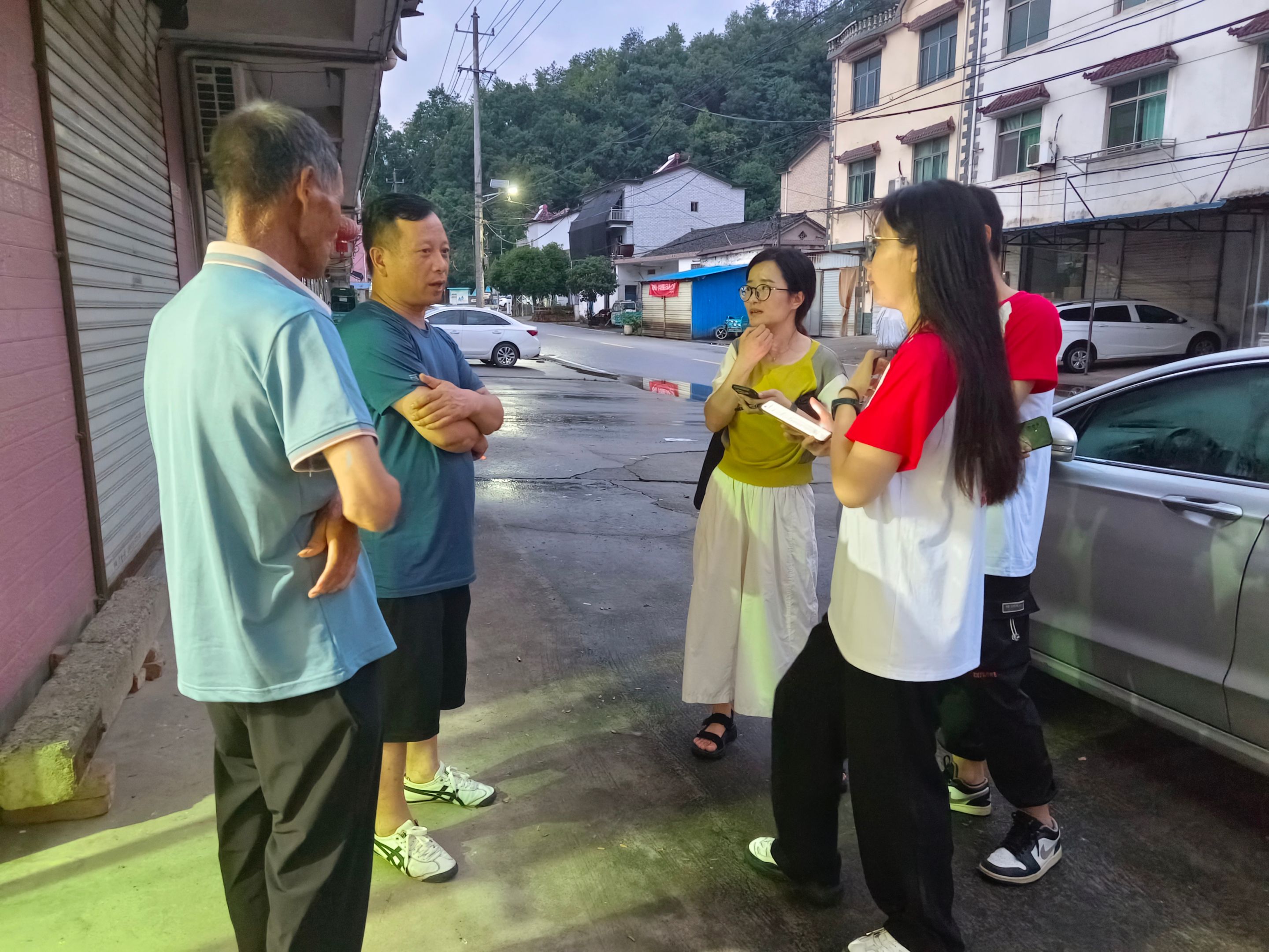 在问卷敲定过后,团队便决定对附近进行试调研。傍晚时分雨势渐小,团队成员分为三个小组,每个小组都调研了两到三户人家,测试问卷的实用功能。试调研结束后,又反馈出部分小问题,在进行适当的修改过后,团队的调查问卷正式定稿。