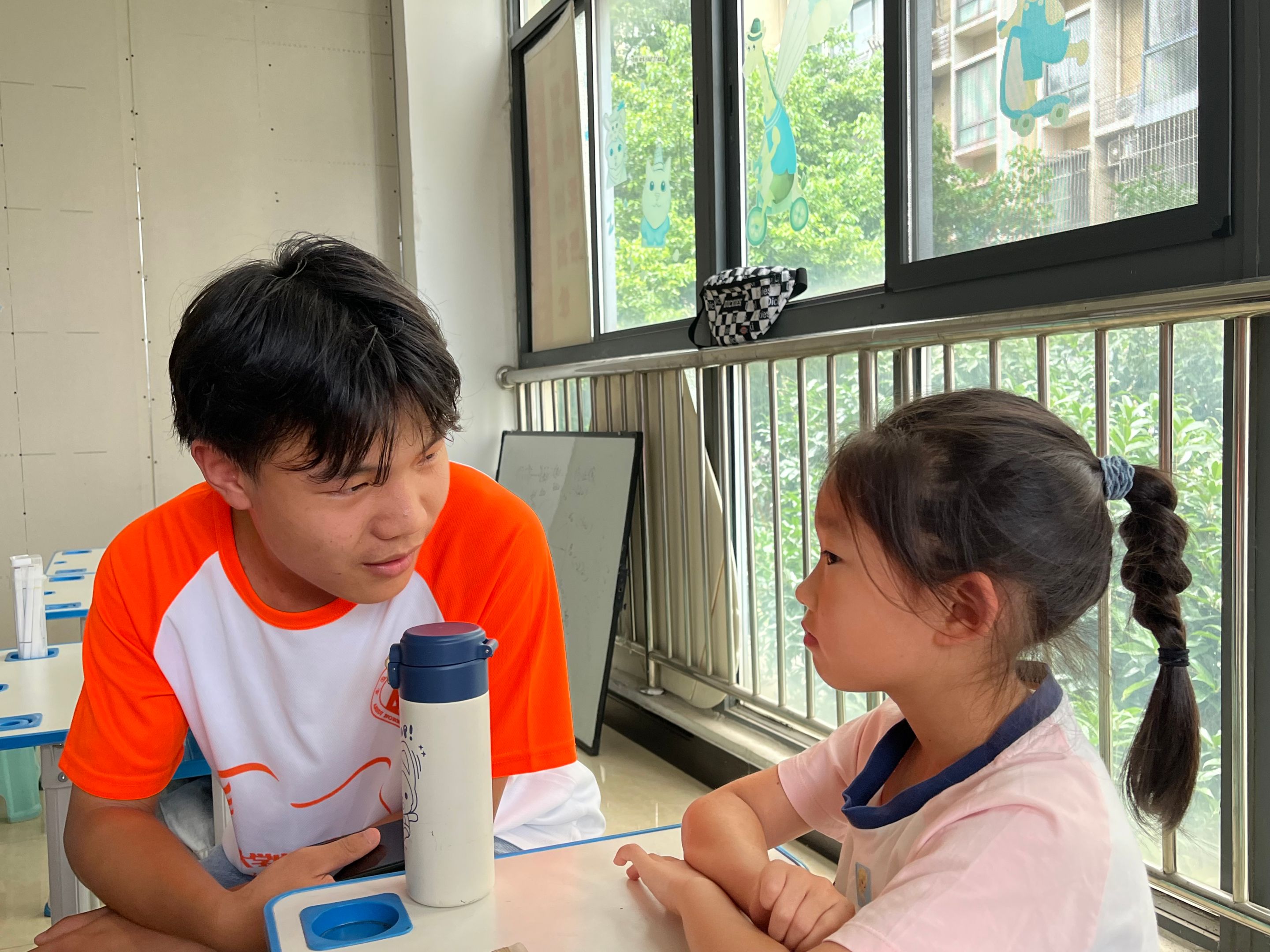 “连雨不知春去,一晴方觉夏深”。盛夏的蝉鸣混杂着粉笔摩擦着黑板吱吱呀呀的声音,高高悬挂的吊扇发出呼呼的声音,这些都成为了最好的背景曲。开幕式上,老师们齐齐站好向小朋友们介绍着自己,小朋友也效仿老师们排排站起来,争先恐后的向老师们介绍着自己,看着他们稚嫩,笑容洋溢的脸庞,消散了初次相识的隔阂,也让团队成员们和小朋友们从陌生到敞开心扉。