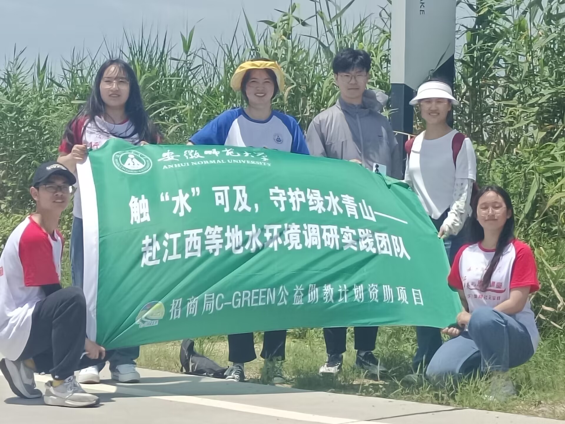 赴江西等地水环境调研实践团队前往南矶山自然保护区,在齐凌艳老师的指导下,顺利完成了水样采集和水质检测。