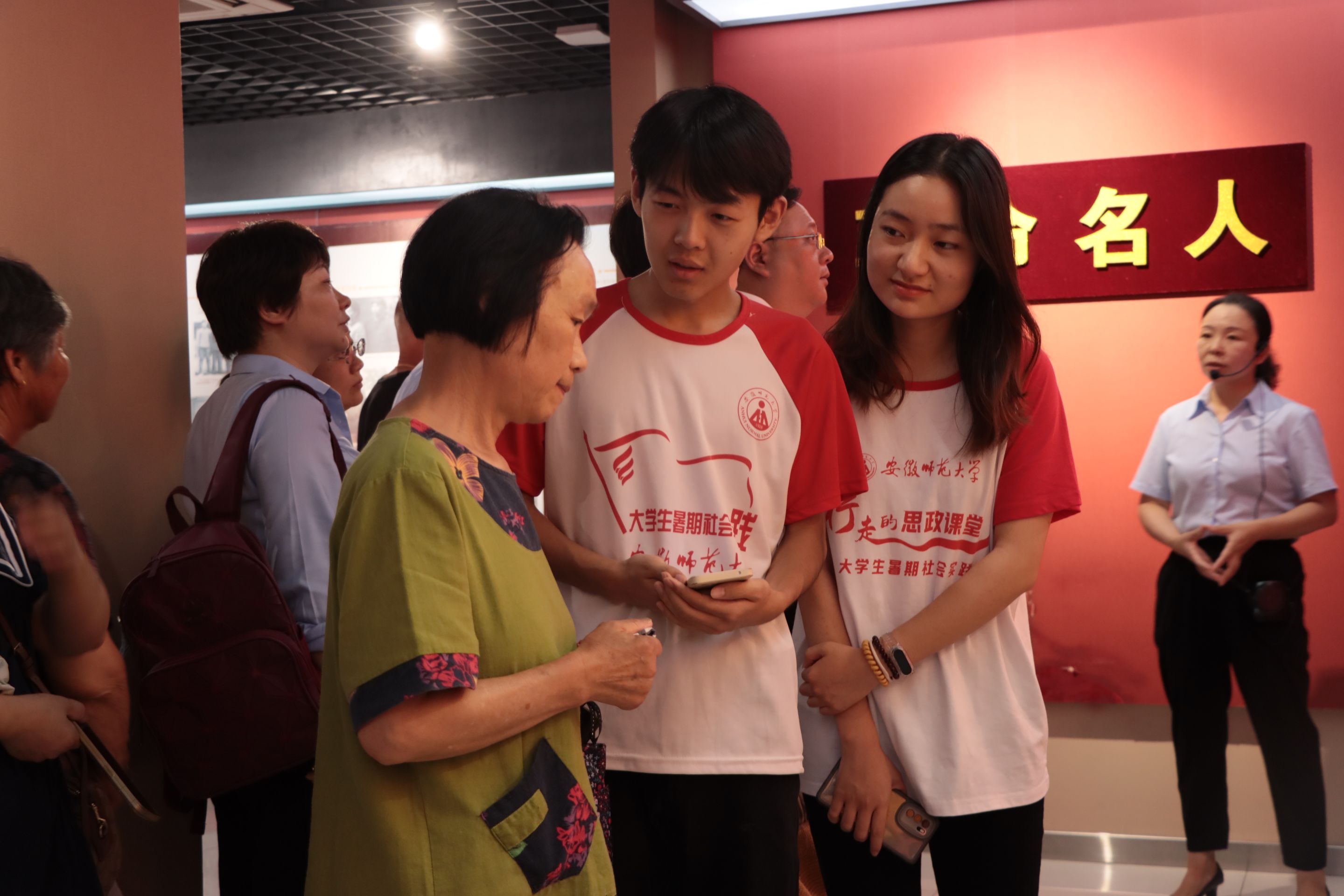 团队成员率先来到金寨县革命博物馆,在成为红色雷锋志愿讲解员驻馆讲解的途中,拉近了与馆内展品的距离,更有幸接触到诸如肖女士这样的红军烈士后人。