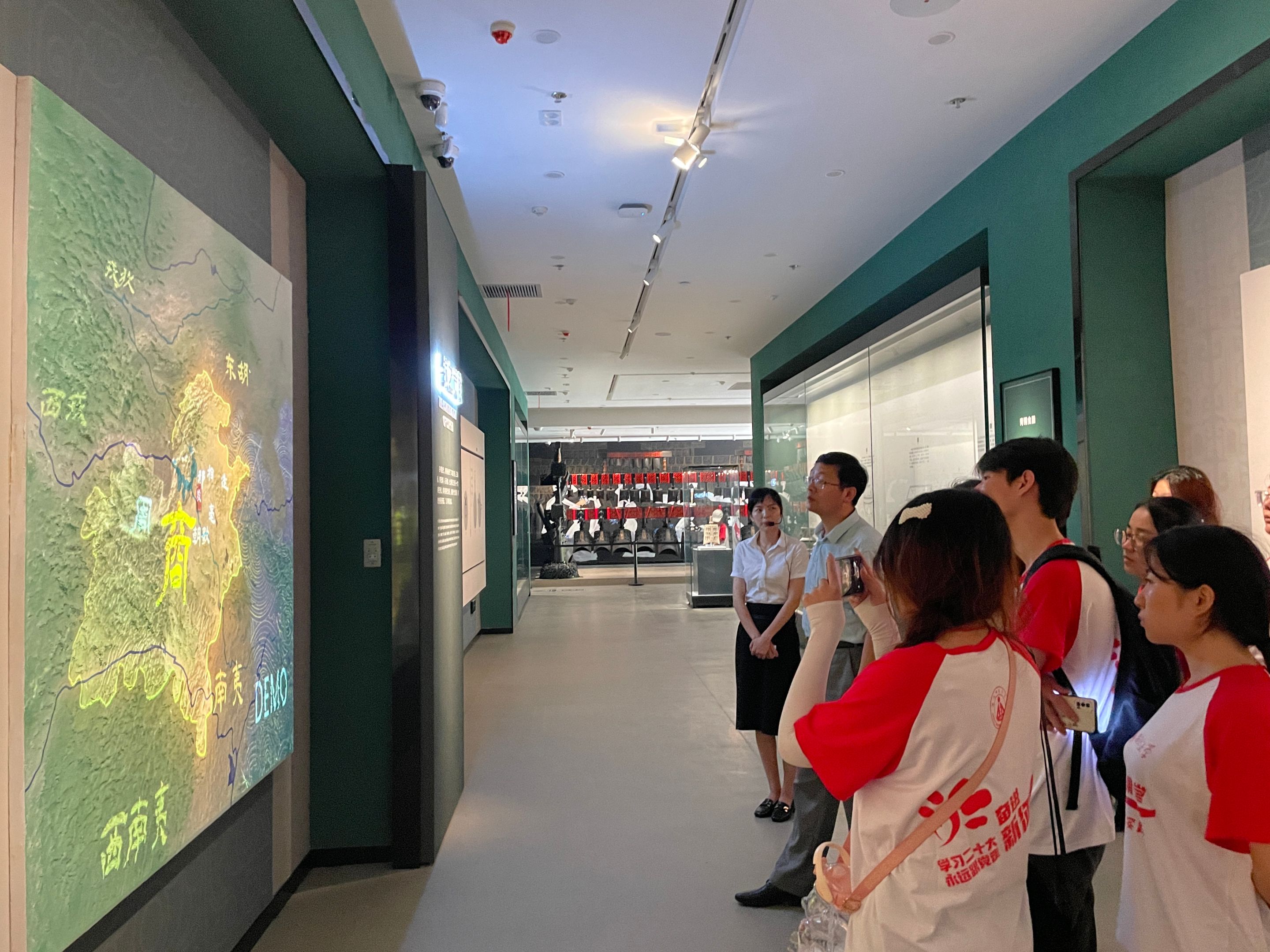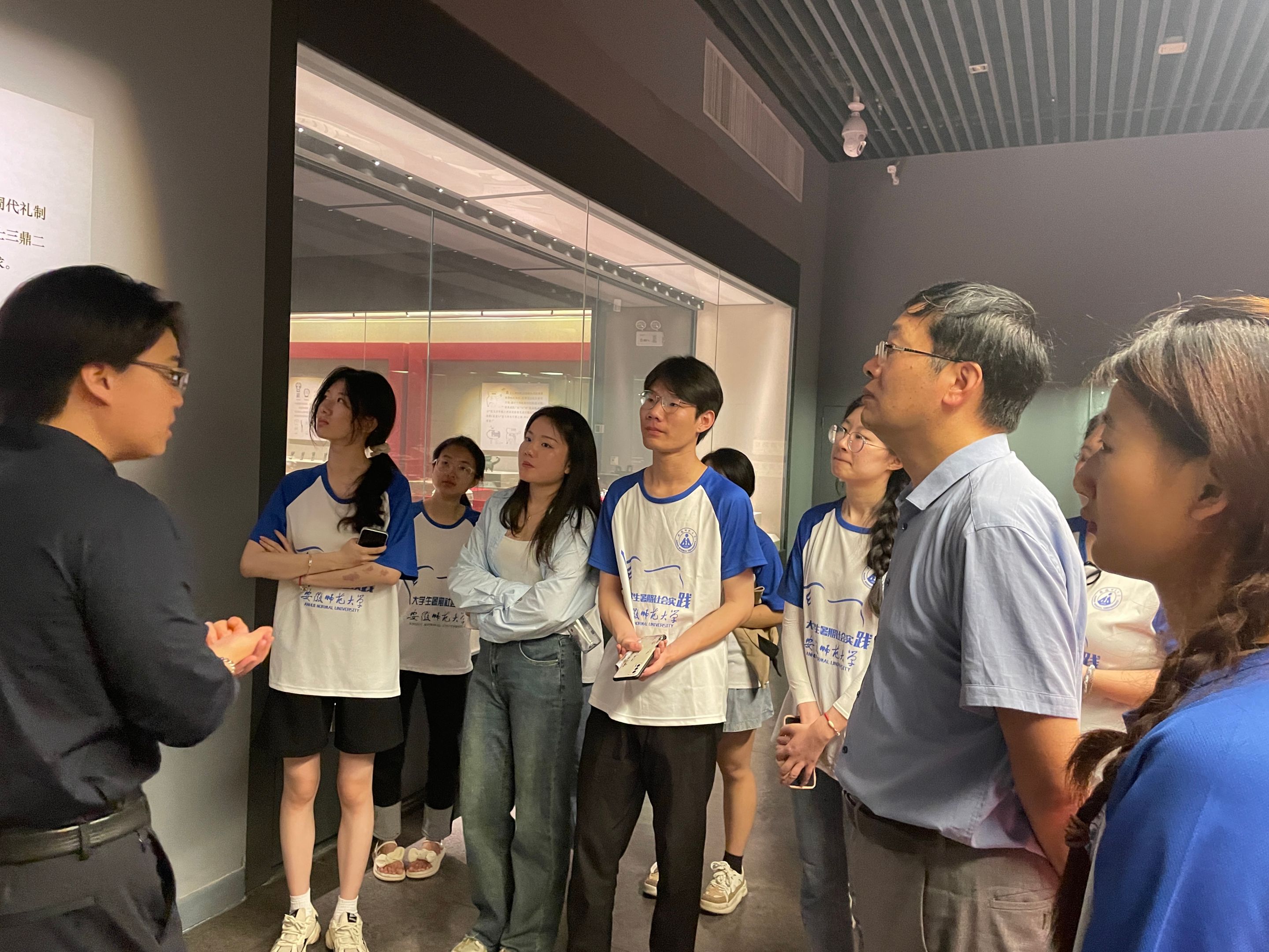 在湖北大冶市铜绿山博物馆,杨效忠教授与博物馆郑正盛主任就长江中下游古青铜带线性旅游目的地与游客行为艺术课题进行了交流,提出了促进安徽铜陵、江西铜岭,湖北铜绿山等地交流,共同发展的构想。铜绿山将现代声电技术与古老的青铜遗址相融合,从采冶、运输,铸造一系列流程再到铜绿山青铜文化历史延承脉络,全方位、立体化、多角度地展现了荆楚大地青铜文化的辉煌灿烂。队员们尤其关注到了铜绿山在地质文化、知识科普以及文创设计中的创新举措,同时针对青铜文化的旅游活化路径提出更多可行性方案。