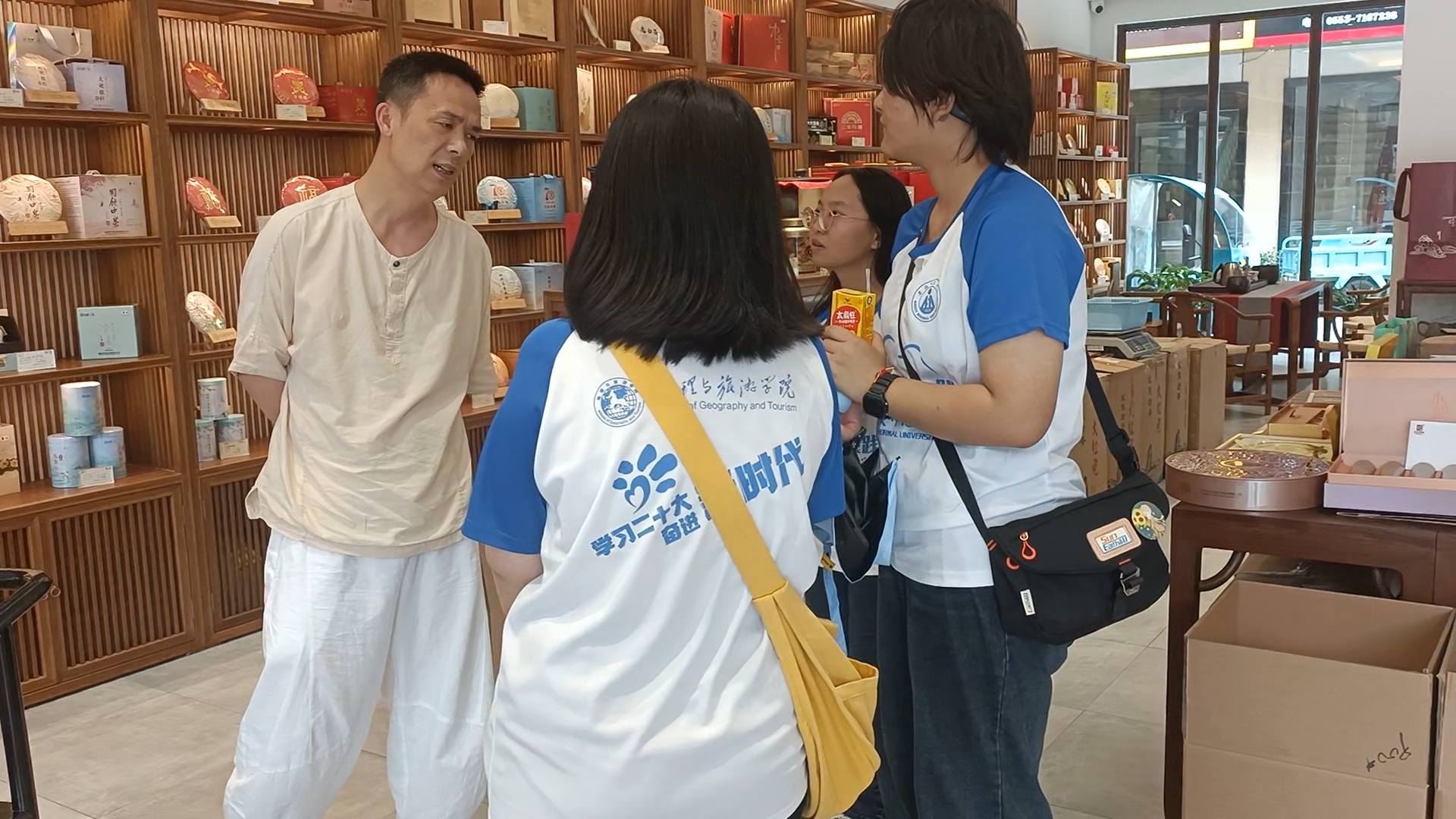 赴芜湖市峨桥镇考察助力乡村振兴调研实践团队的队员们来到芜湖市峨桥镇,对当地的茶市经济状况进行了调研,并游览了茶文化景点,感受了茶文化的魅力。