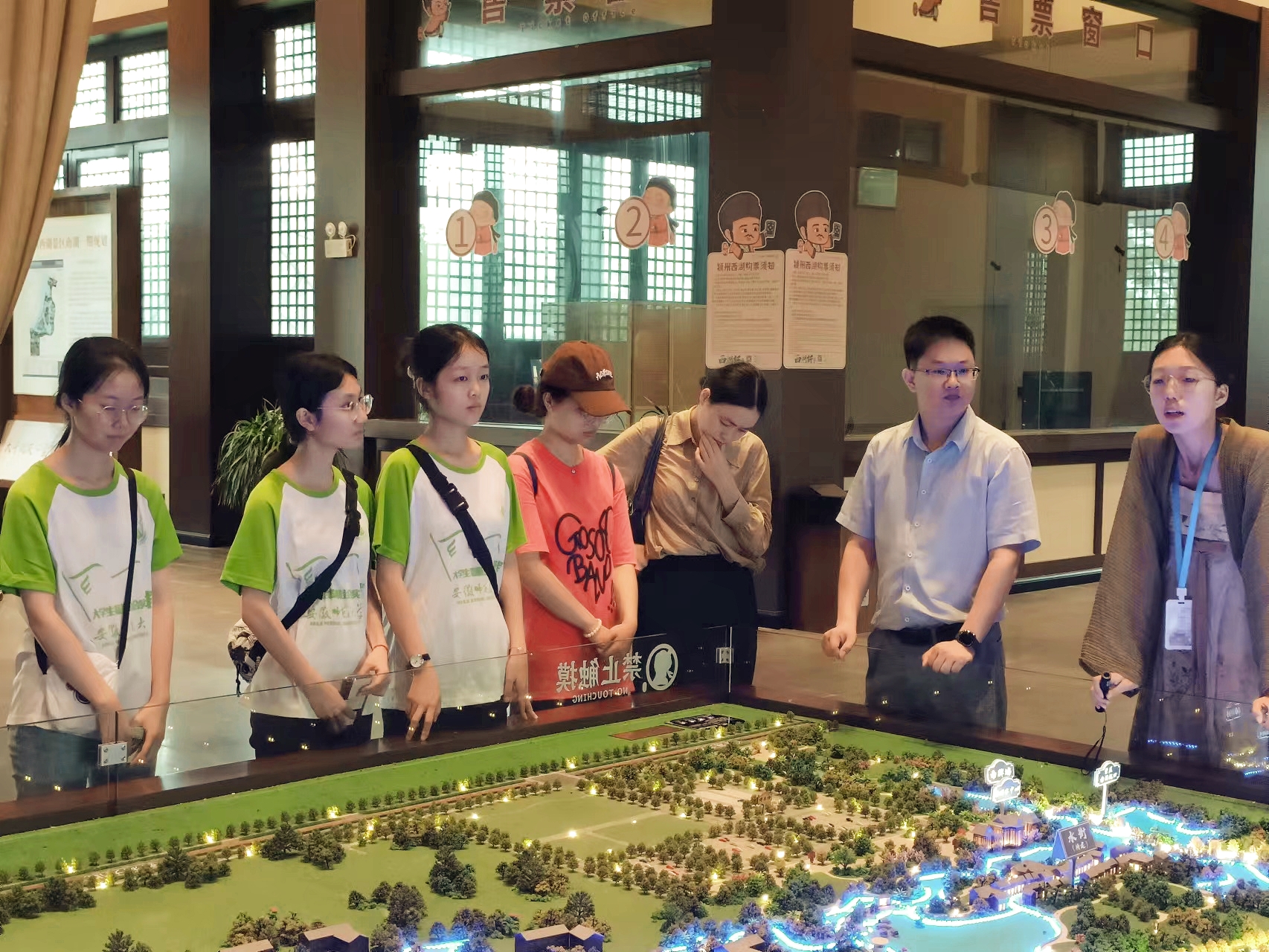 在景区万经理的带领下,两校师生对现阶段颍州西湖已经开发的区域进行实地参观,梳理现已开发利用的文化旅游资源。在怡园中,数字光影互动长卷《颍州西湖赋》实现了科技和文化旅游的结合,它利用高科技手段,将颍州西湖美景与欧苏诗词融贯其中,为旅游者带来更直观的沉浸式体验。兰园采用传统院落式布局,园内建设的有苏轼展厅、欧阳修展厅、兰花展厅以及游廊,集观光旅游和文化体验于一体。