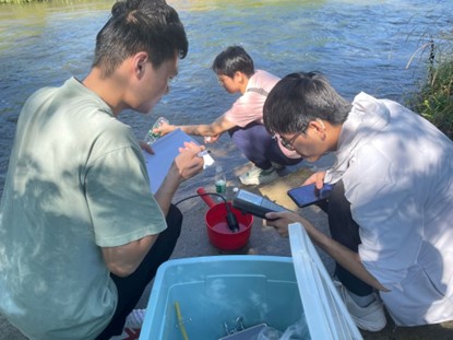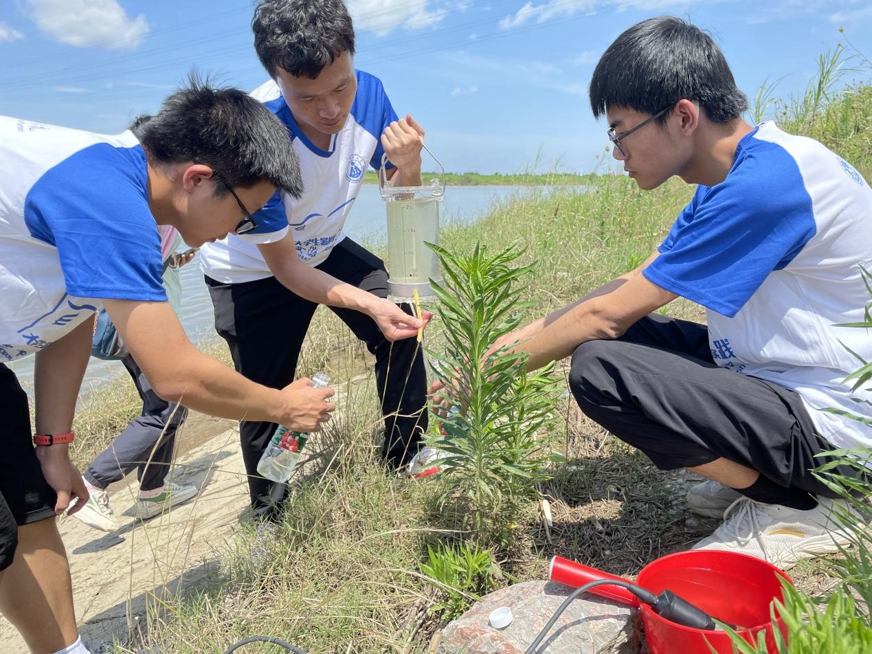 “漳鱼小丸子”团队为探究漳河水体浮游细菌群落的分布状况、多样性变化特征等信息,自漳河源头顺流而上,直至入江口。实践团队在此采水样,测数据,最后将在实验室内对采集的水样进行进一步的分析处理。