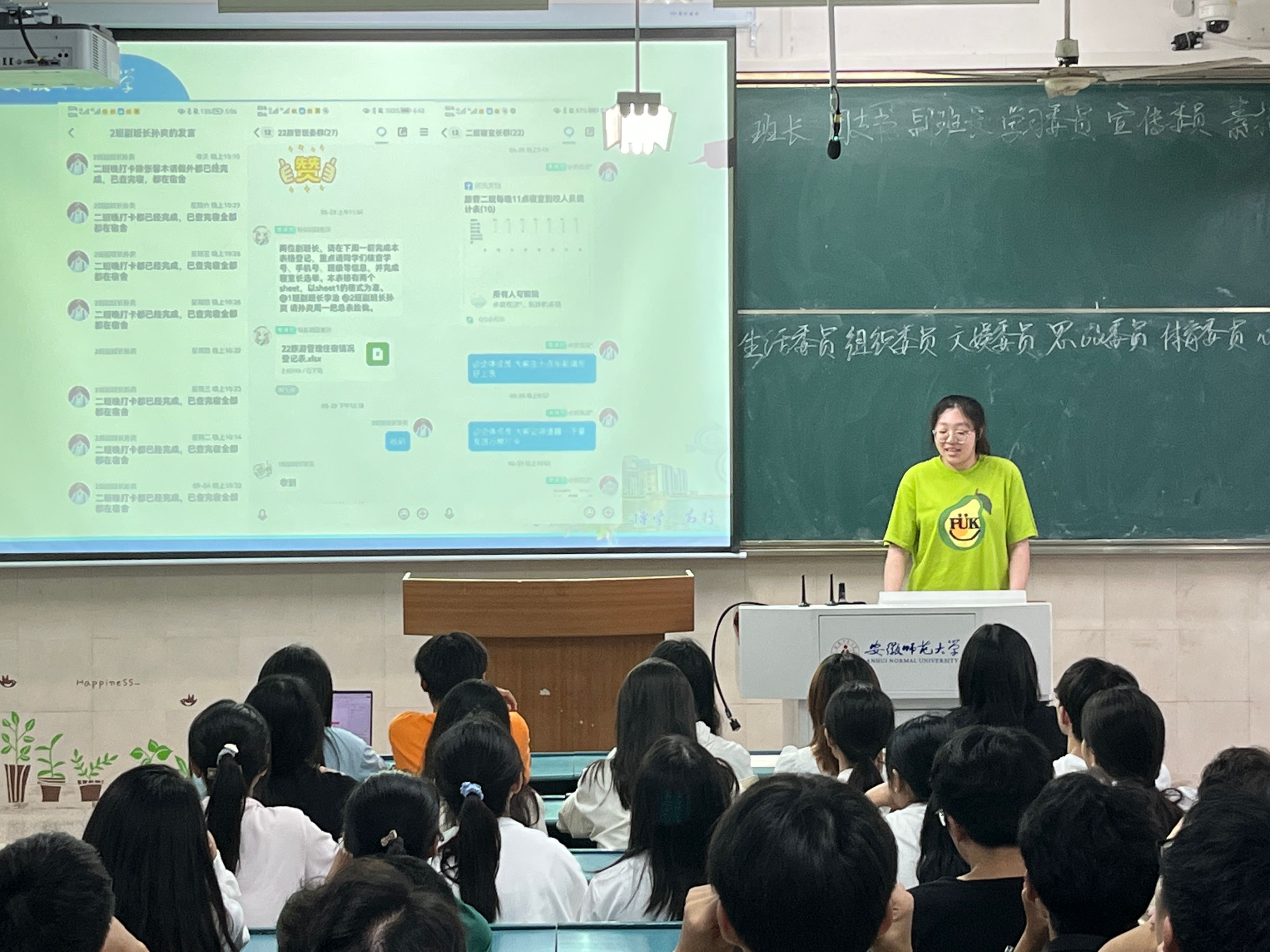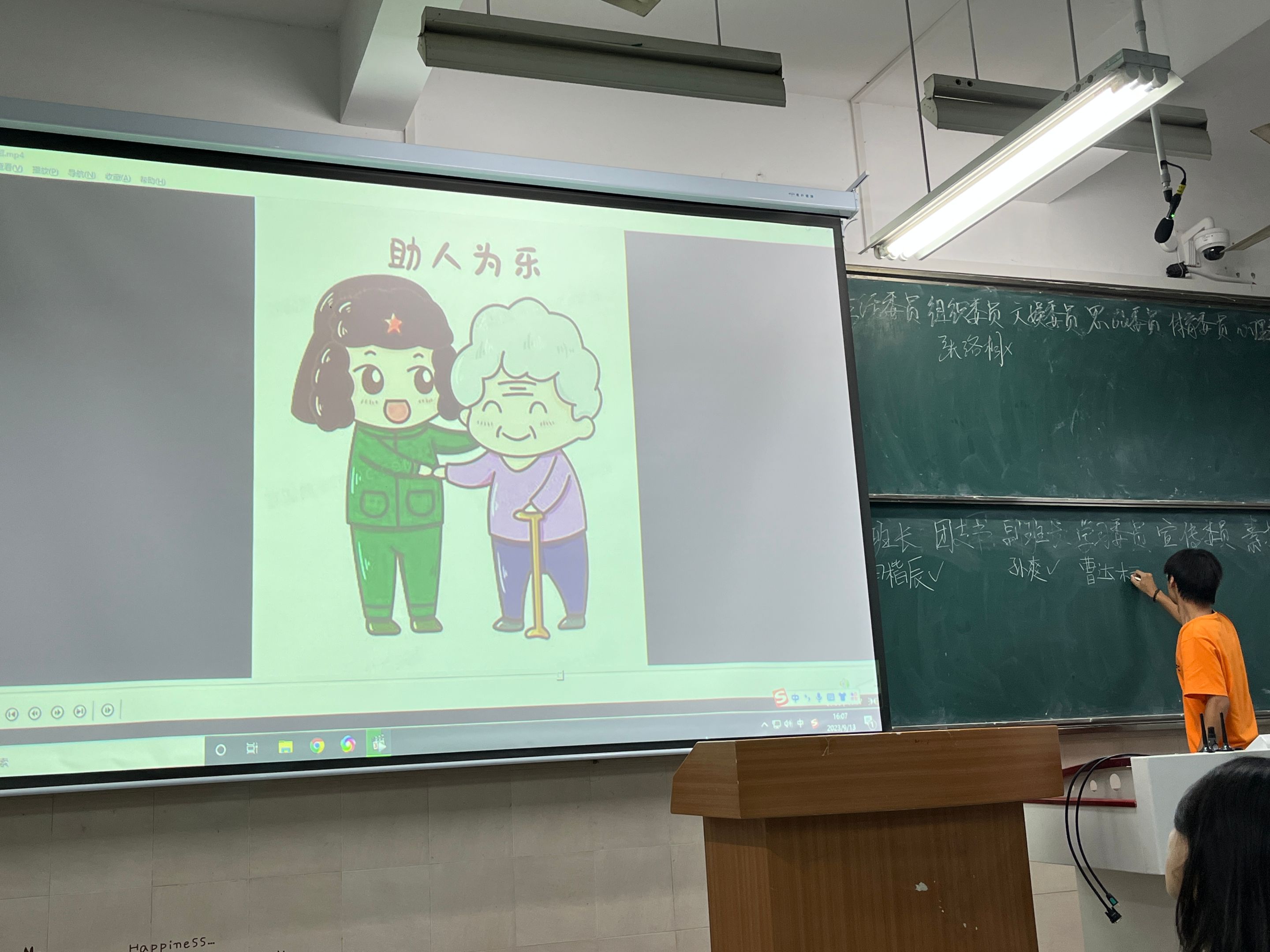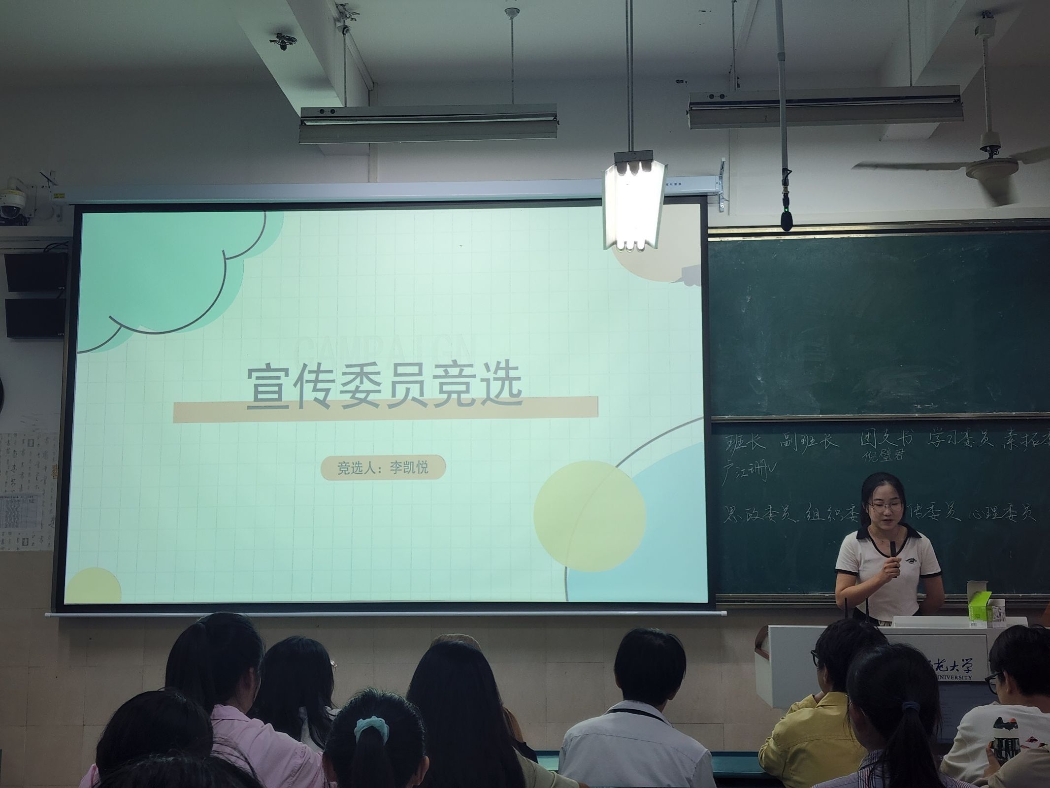 会上,还举行了新一届的班委竞选。同学们踊跃竞争,有的用PPT展示个人风采,有的用视频展示个人才能,现场活动氛围紧张活跃。最后根据全班同学的匿名投票,确定了12名班委,班委换届大会成功落下了帷幕。