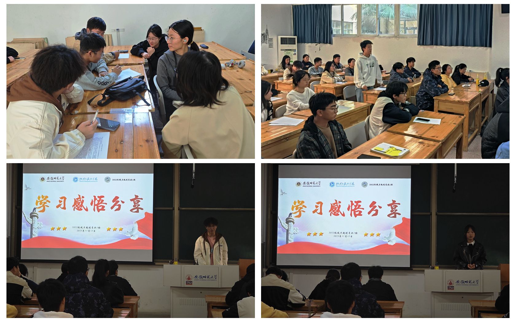 “青春与使命同行,奋进与荣光相伴”。结合理论学习与专业实际,王冰冰组织同学们开展问题探讨和学习感悟分享。同学们以团小组为单位开展问题讨论,交流学习心得。吴佳珍同学在分享如何将中国式现代化与城乡发展相融合时说道:“我们既要关注时代发展新态势,切实推进中国式现代化进程,也要注重城乡融合,关注乡村振兴战略。作为城乡规划专业的学生,我们应当努力学习专业知识,夯实理论基础,注重创新思维和实践能力的培养。”