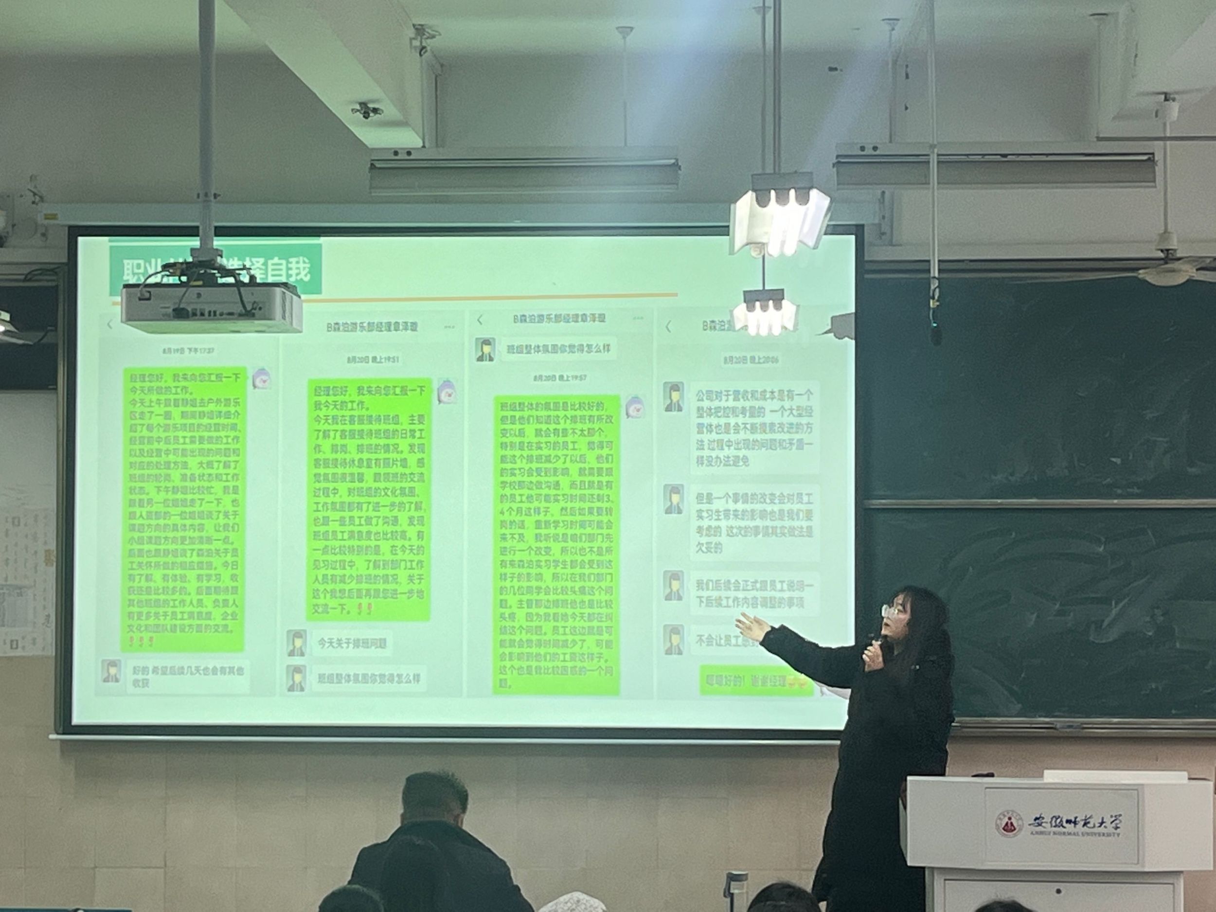 谢园从李校长发起的“大学生护航行动计划”的工作目标、工作内容引出本次的班会主题——学风建设暨冬季安全教育。谢园总结了本学期班级的学习情况,针对显现的“提前进课堂奔头不足”“认真听讲的精神不足”“主动学习劲头不足”等问题,谢园强调要落实班级考勤制度、加强对专业的认知以及主动提升对自己的要求。