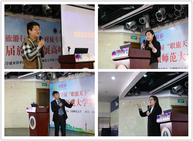 第三届旅业发展高峰论坛,活动也进一步提升为“政府领导、行业精英、学界专家、旅游专业学生”四位一体平台,为在校旅游专业学生提供了一个汇集旅游业界精英、实践导师、政府领导、学界专家的共享课堂,初步实现了“就业招聘+专业建设+行业发展+人才培养”四位一体的创新特色,打造了安徽旅游院校“招聘会+”的就业工作品牌,“职旅天下”平台正逐步成为安徽省“起步最早、规模最大、影响最广”的高校旅游专业人才就业招聘和校企对接“集散地”。人民网、安徽旅游政务网、芜湖电视台等媒体报道了本次活动。