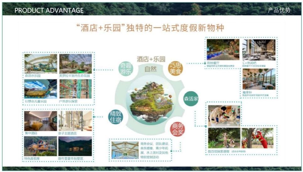 的室内外森泊水乐园、占地超 3000 平方米的超大型儿童乐园、户外探索游乐、亲子自然课堂、地道当地美食等丰富多彩的休闲项目。