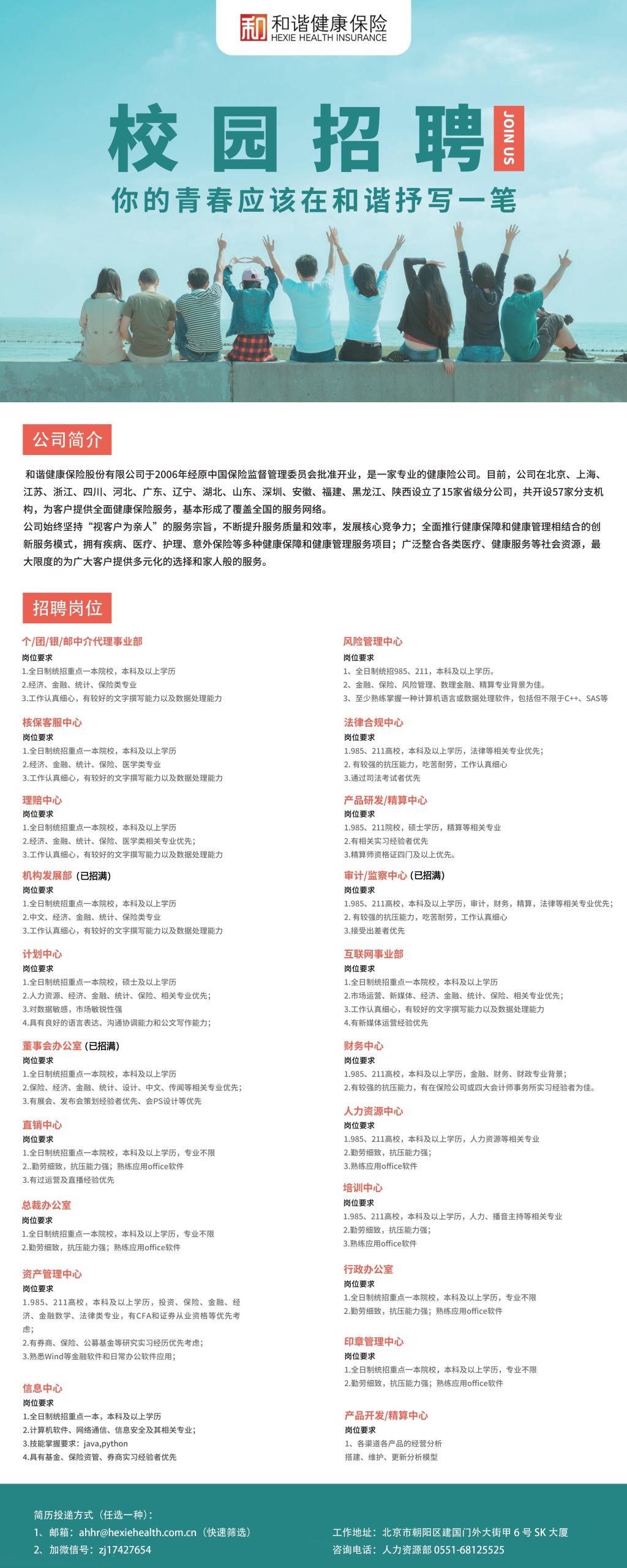 和谐健康保险股份有限公司招聘简章