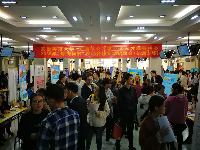 本次招聘会采取简历投递、现场宣讲、后台面试相结合的方式,力图求实、求快、求准。应聘者有备而来,手持精心制作的自荐书和简历,满脸自信地穿梭在众多展台间仔细搜寻着心仪的企业,与企业HR进行深入沟通,主动了解用人单位的情况。企业高度重视,HR、高管甚至总经理亲自坐镇,借助多媒体设备展示其企业的发展理念和招聘要求,吸引大量应聘毕业生驻足观看,现场人潮涌动,十分热烈。招聘会上。2019届毕业生张晓晓说道:“今天的专场招聘会企业云集,现场有很多知名企业前来招聘,让我们毕业生不出校门就能找工作,为学校和学院的精心组织点赞!目前我已经投了三家心仪的单位,其中一家等会儿就要去面试了,希望能有好的结果。”多家用人单位也表示,对于安师大毕业生的质量十分信赖,能有这样一个集中选拔优质人才的平台,要充分把握住机会。